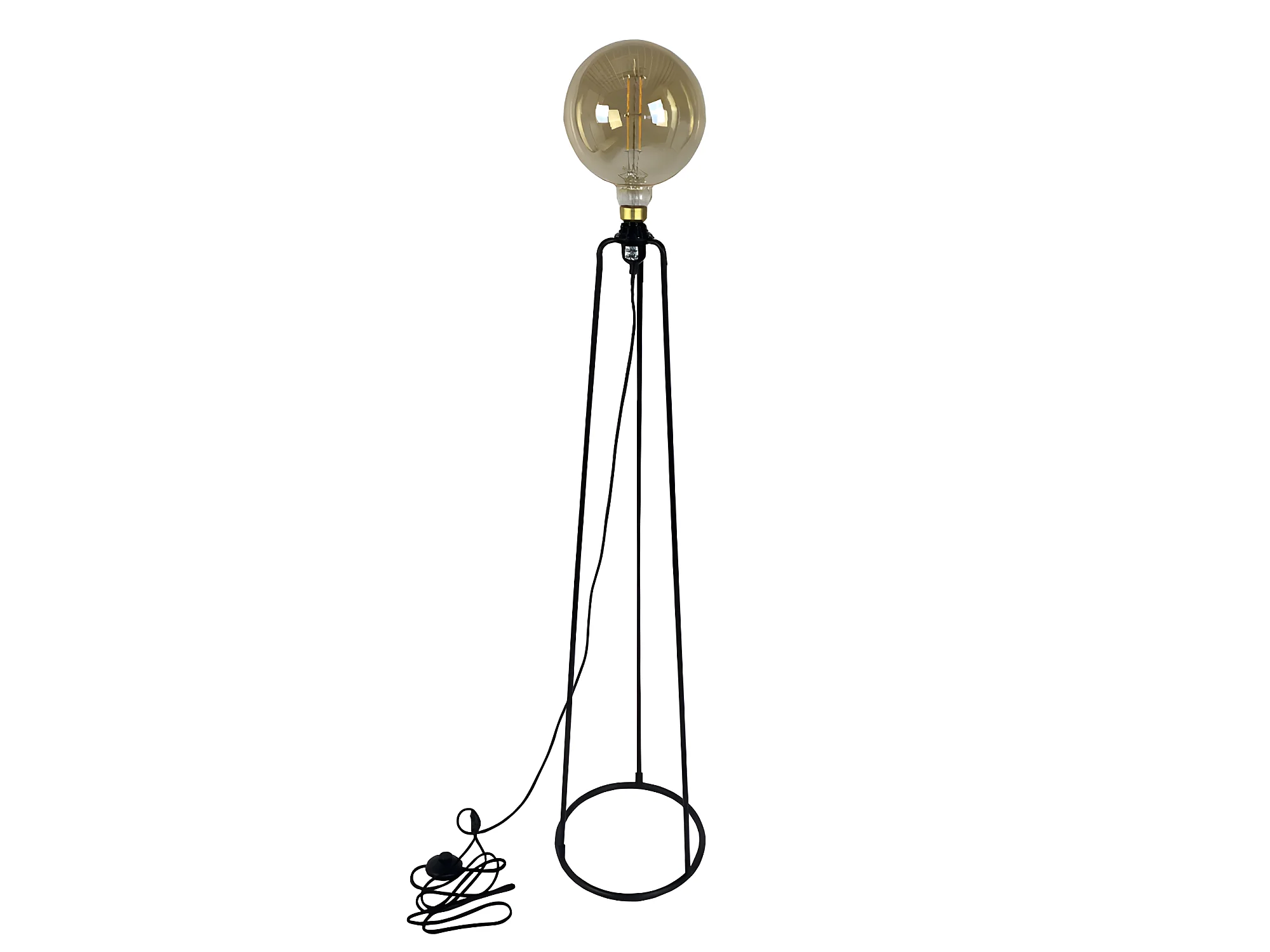 Lampadaire trépied filaire en métal noir et doré - PHARO 9289