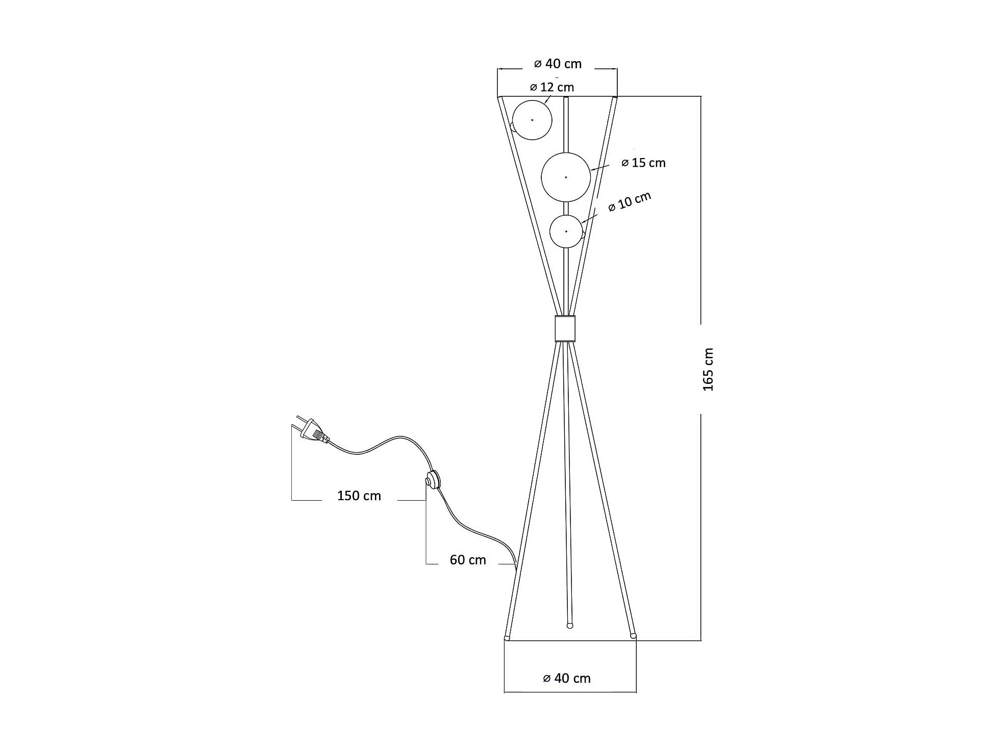 Lampadaire trépied noir boules blanches - Phoebe
