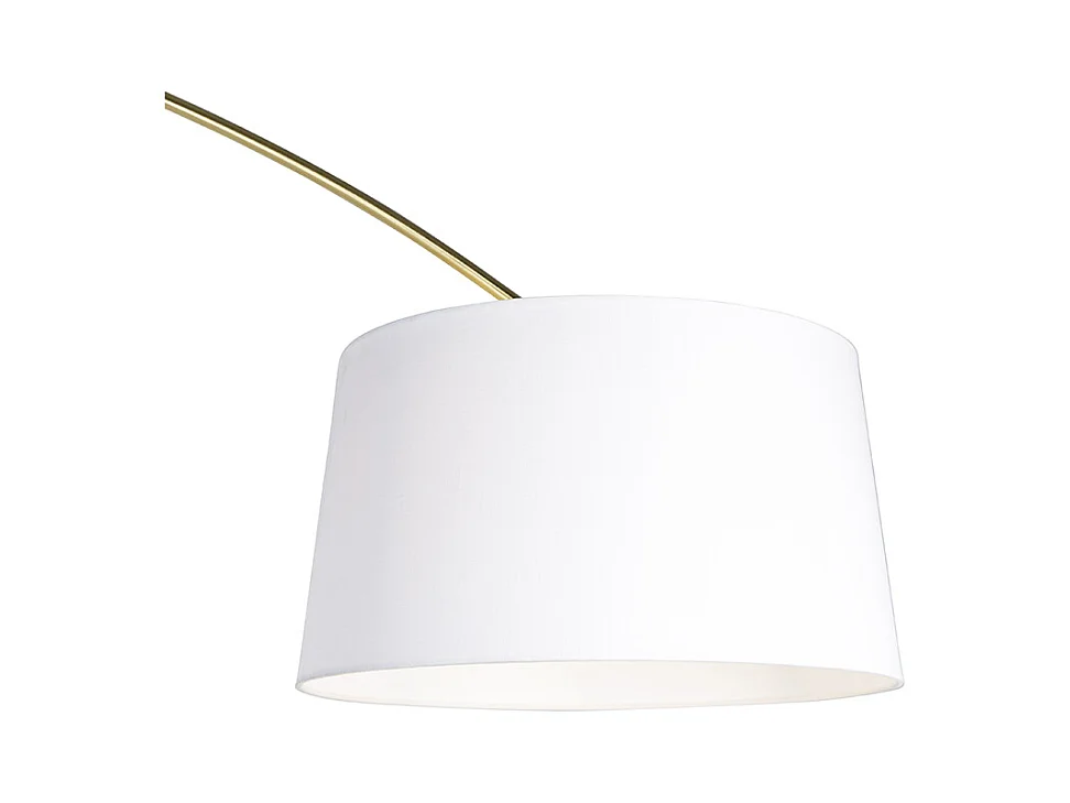 Lampe à arc en laiton avec abat-jour en tissu blanc 50 cm - XXL