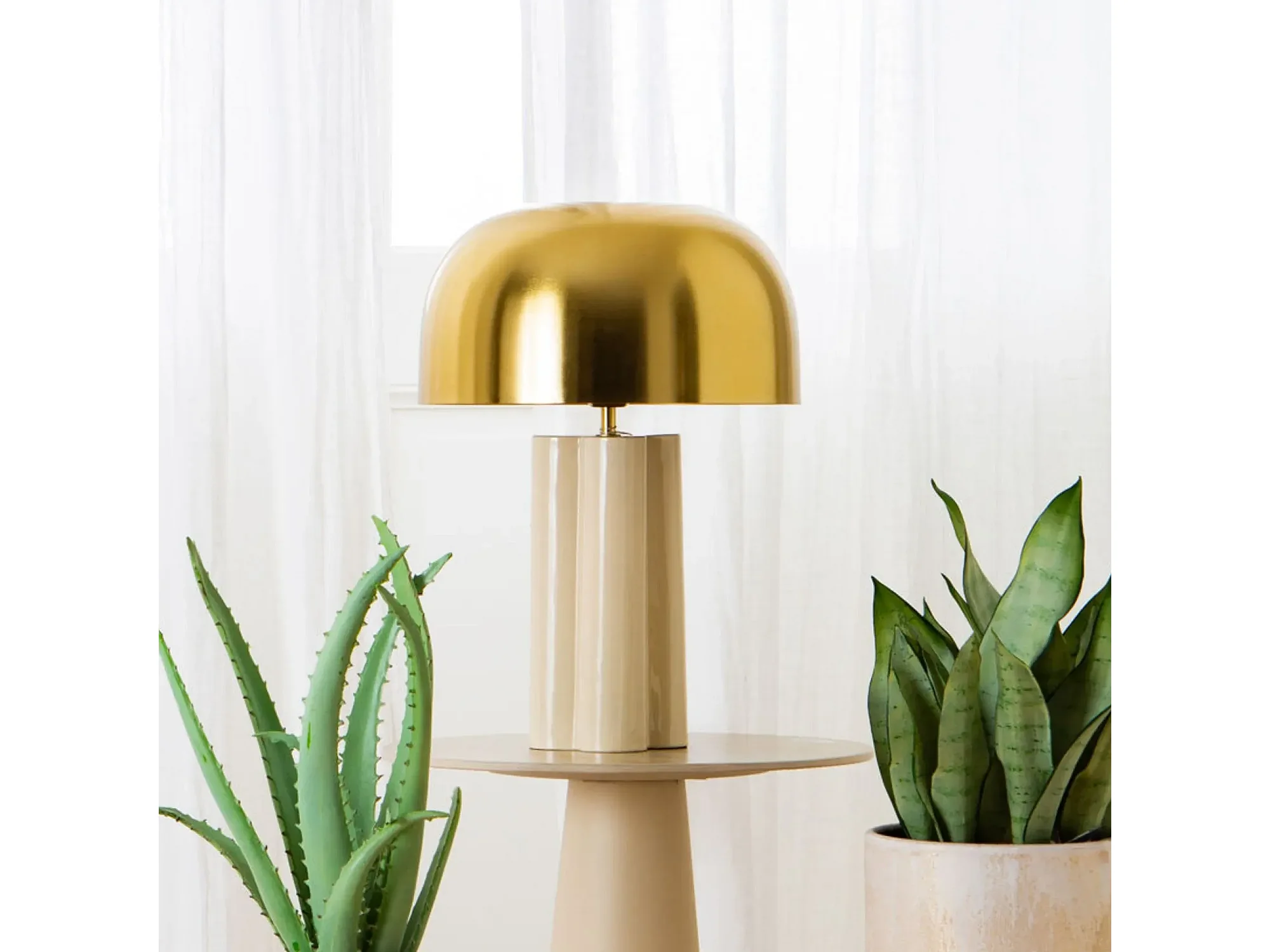 Lampe à poser abat-jour rond en laiton - TREFLE