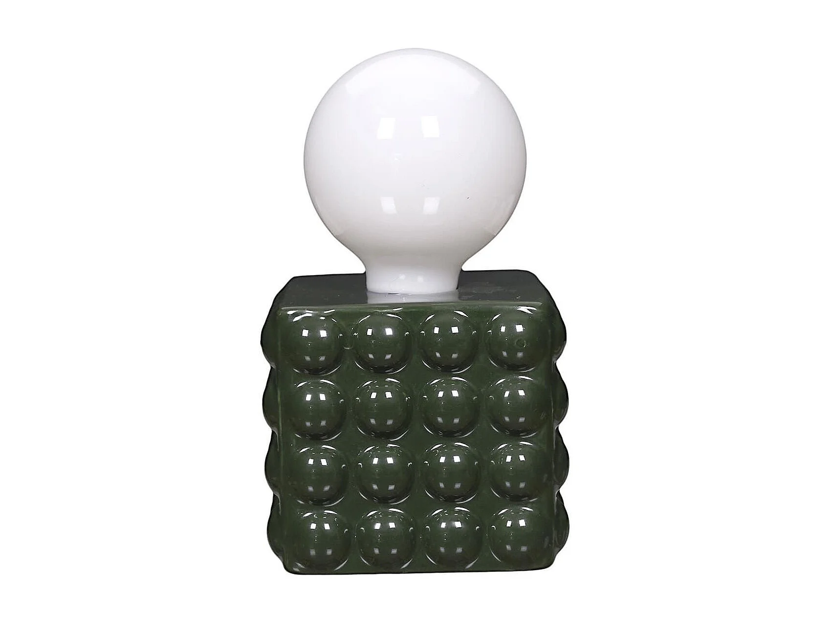 Lampe à poser céramique relief vert foret abat-jour globe (H17cm) sur piles