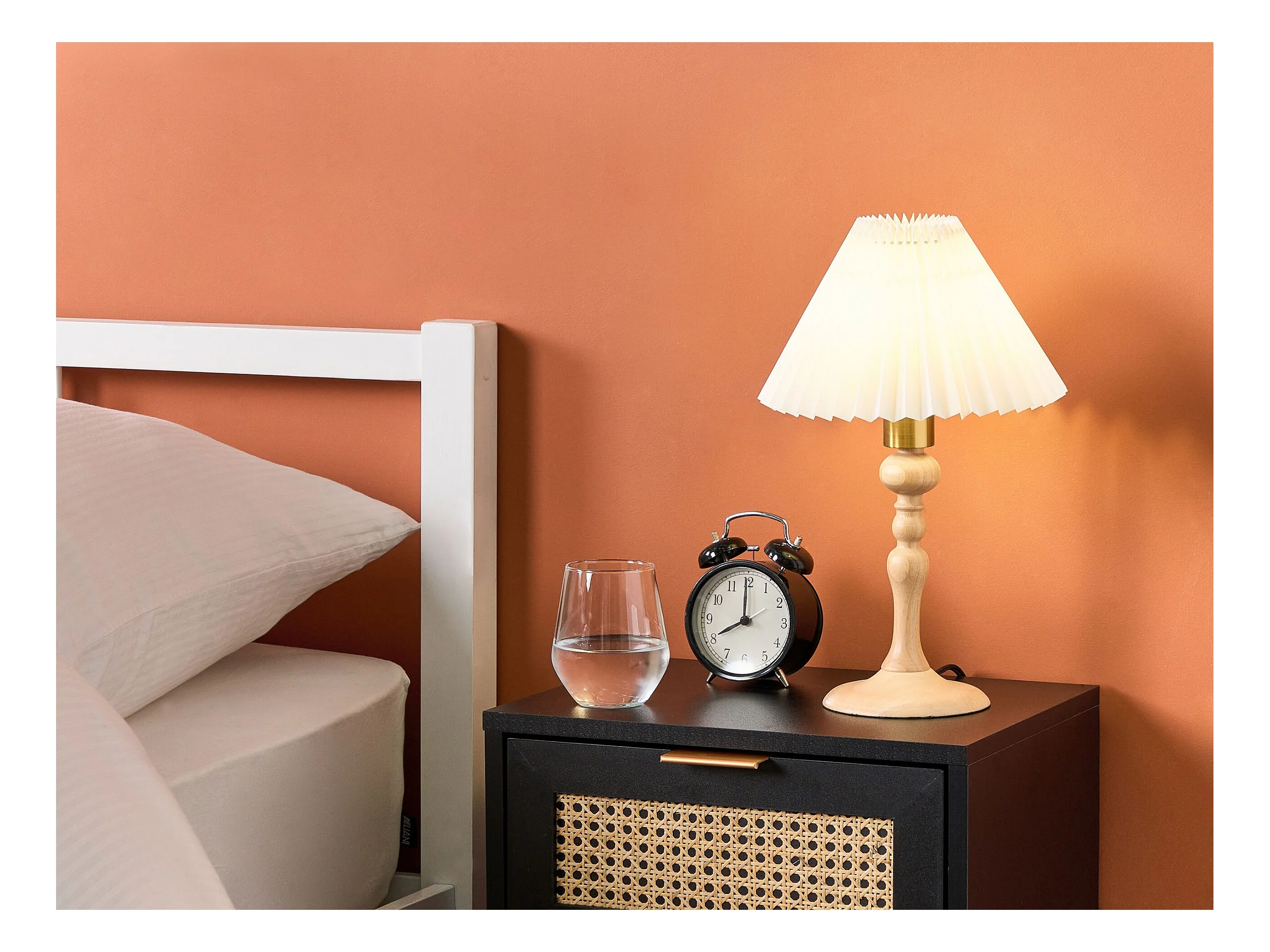 MAYA - Chevet 1 Tiroir Effet Bois et Façade Rotin