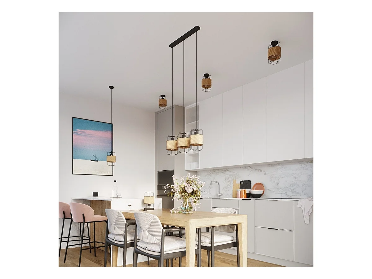 Lustre en métal à hauteur réglable - 3 abat-jours - D. 37 x H. 25/111 cm - Noir et cuivré - YILDO