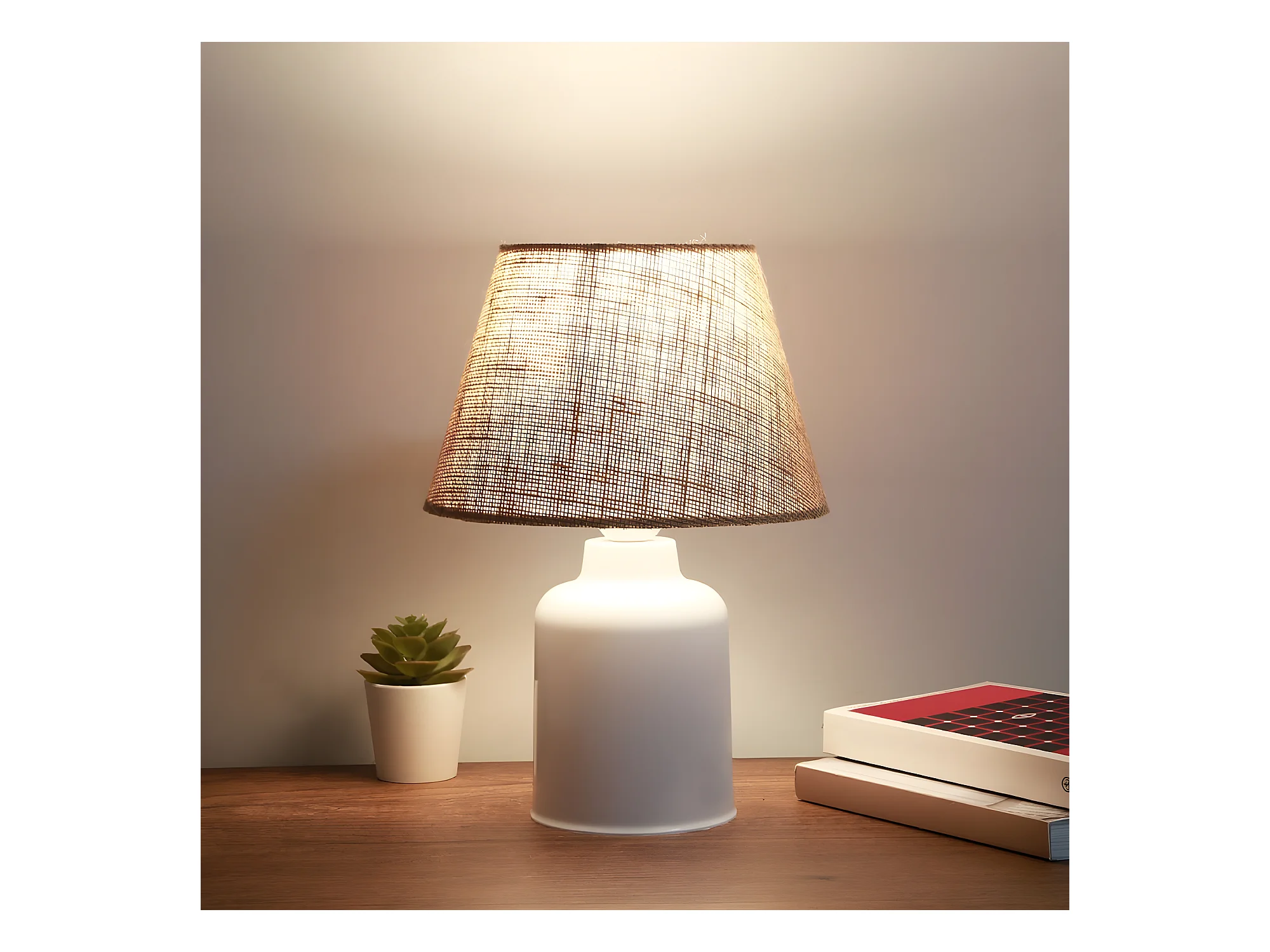 Lampe à poser Iberle avec pied en plastique et abat-jour en jute 1xE27 - Blanc