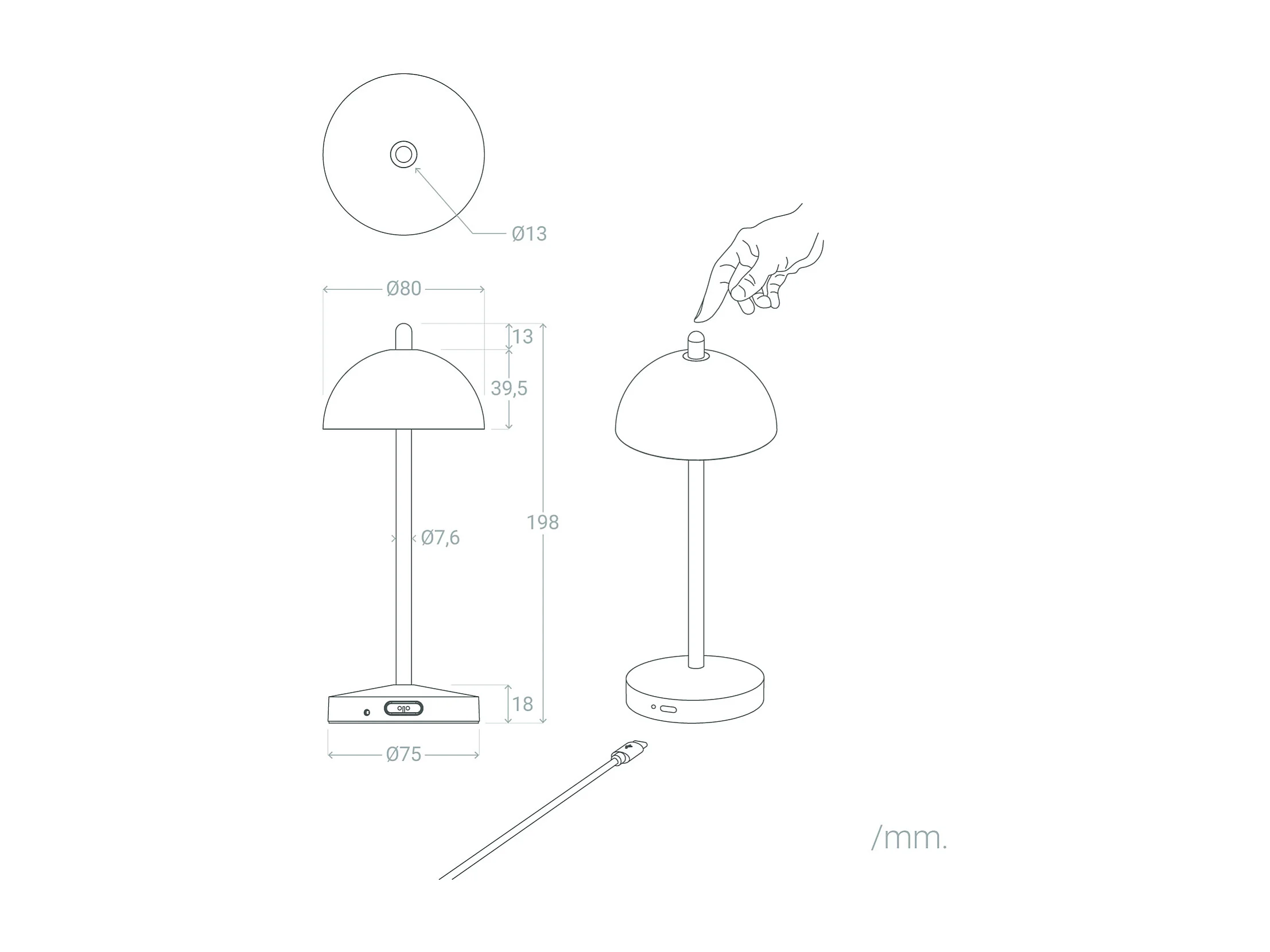 Lampe à Poser LED Portable Extérieure Métal avec Batterie Rechargeable Pirinoa Laiton