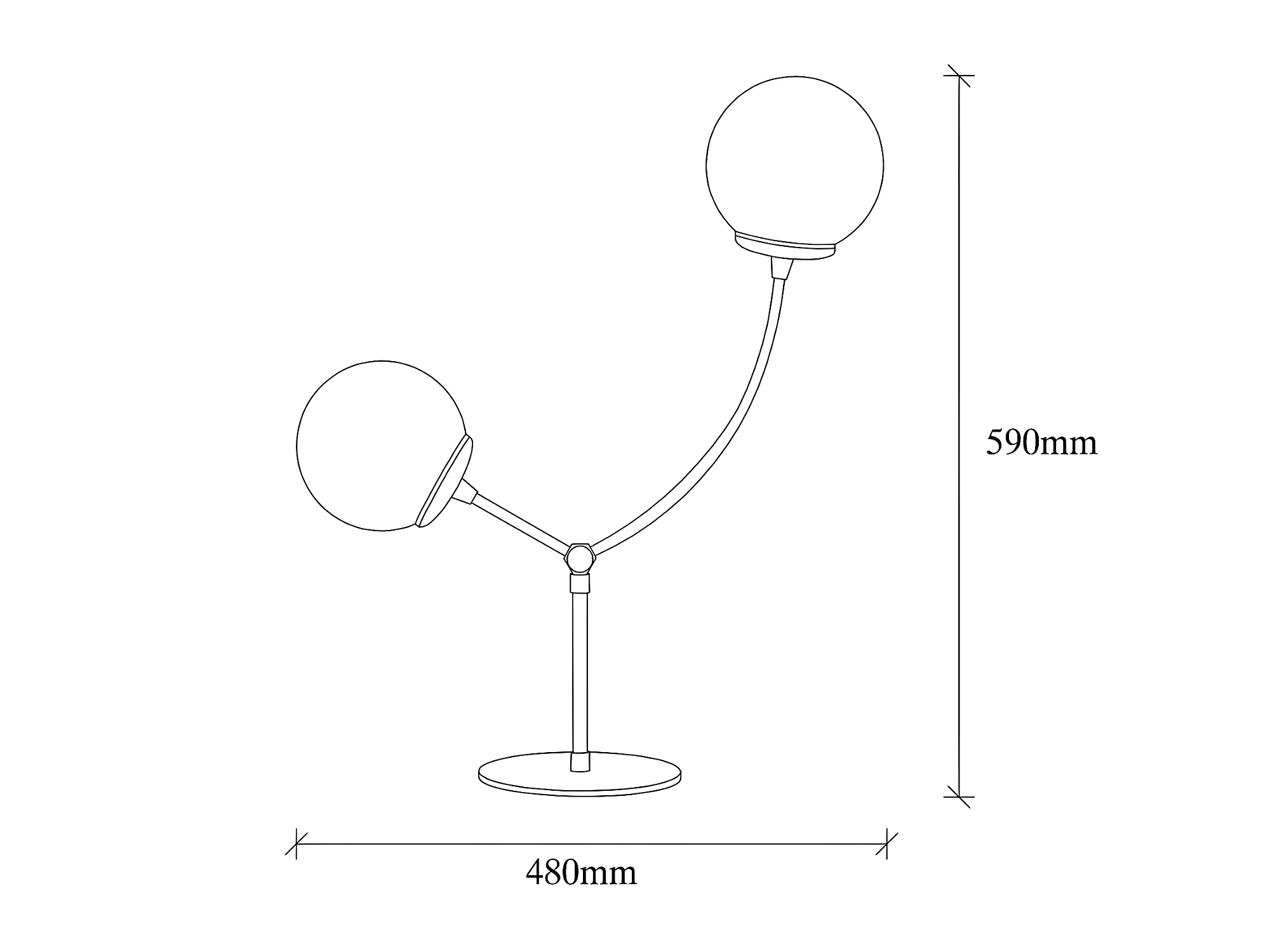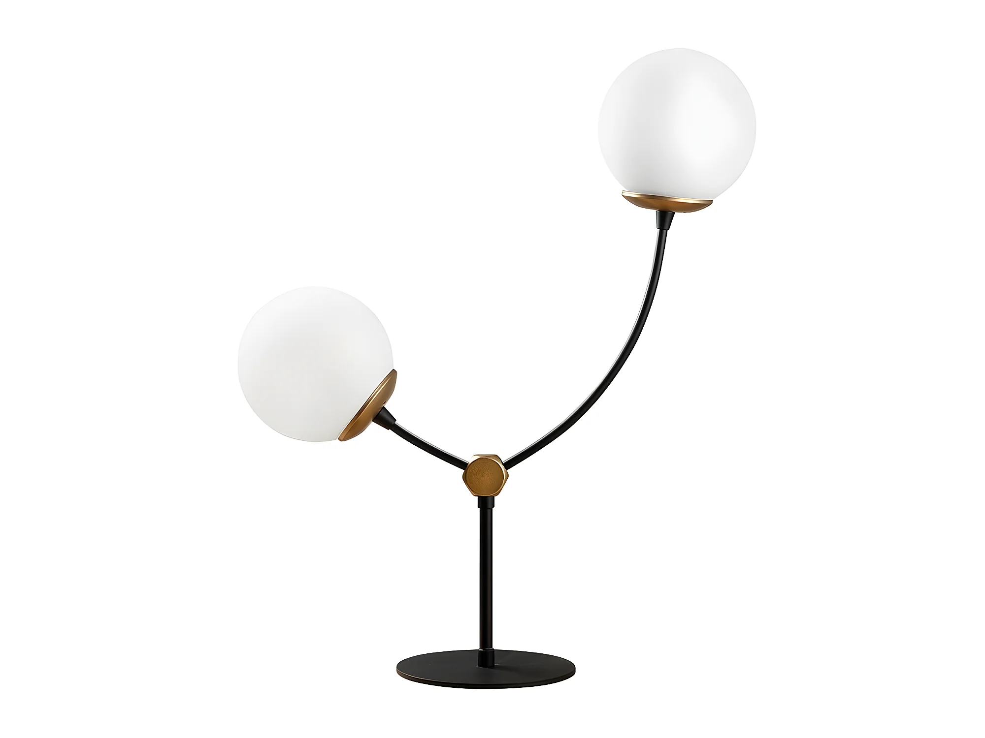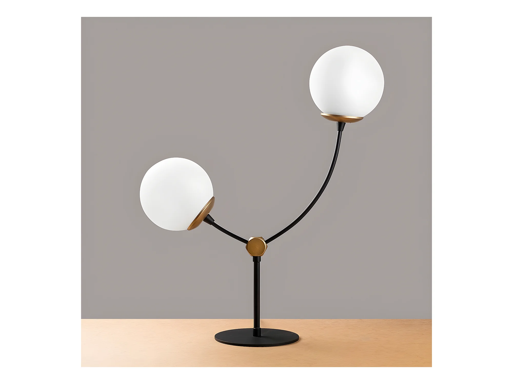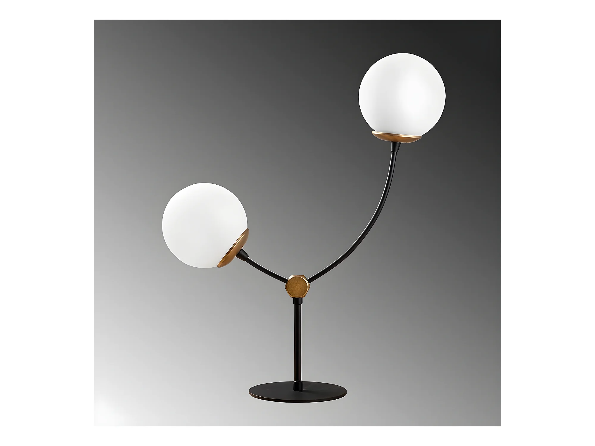 Lampe à poser Mosoma avec structure en métal et sphères en verre 2xE27 - Noir et Or