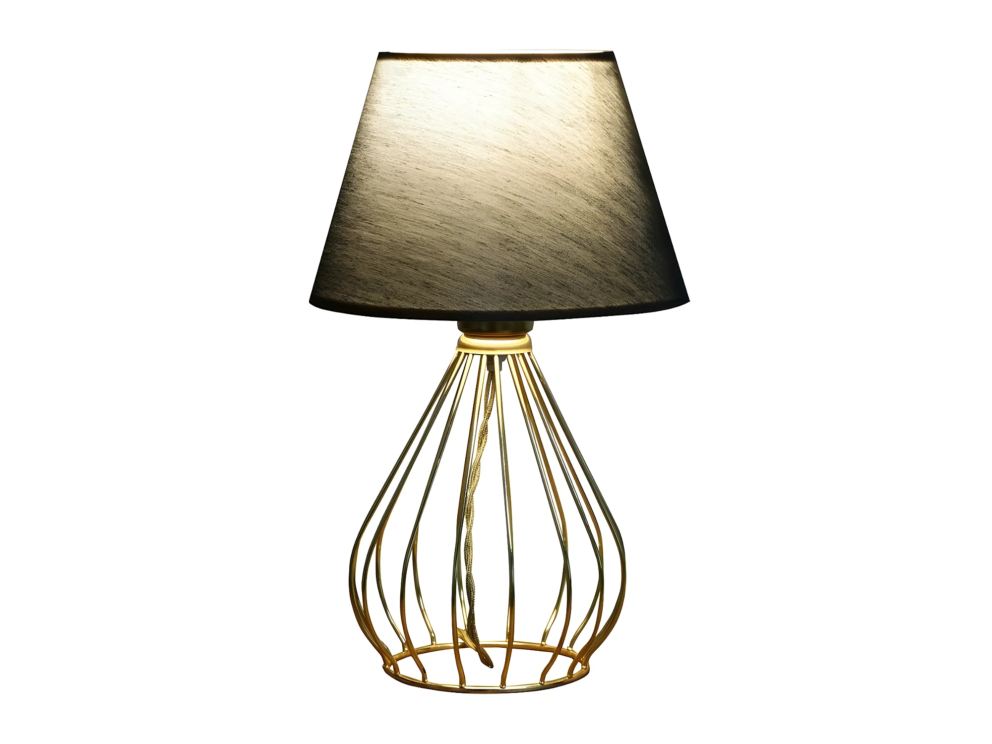 Lampe à poser originale Batisa en métal et abat-jour en tissu 1xE27 - Or et noir