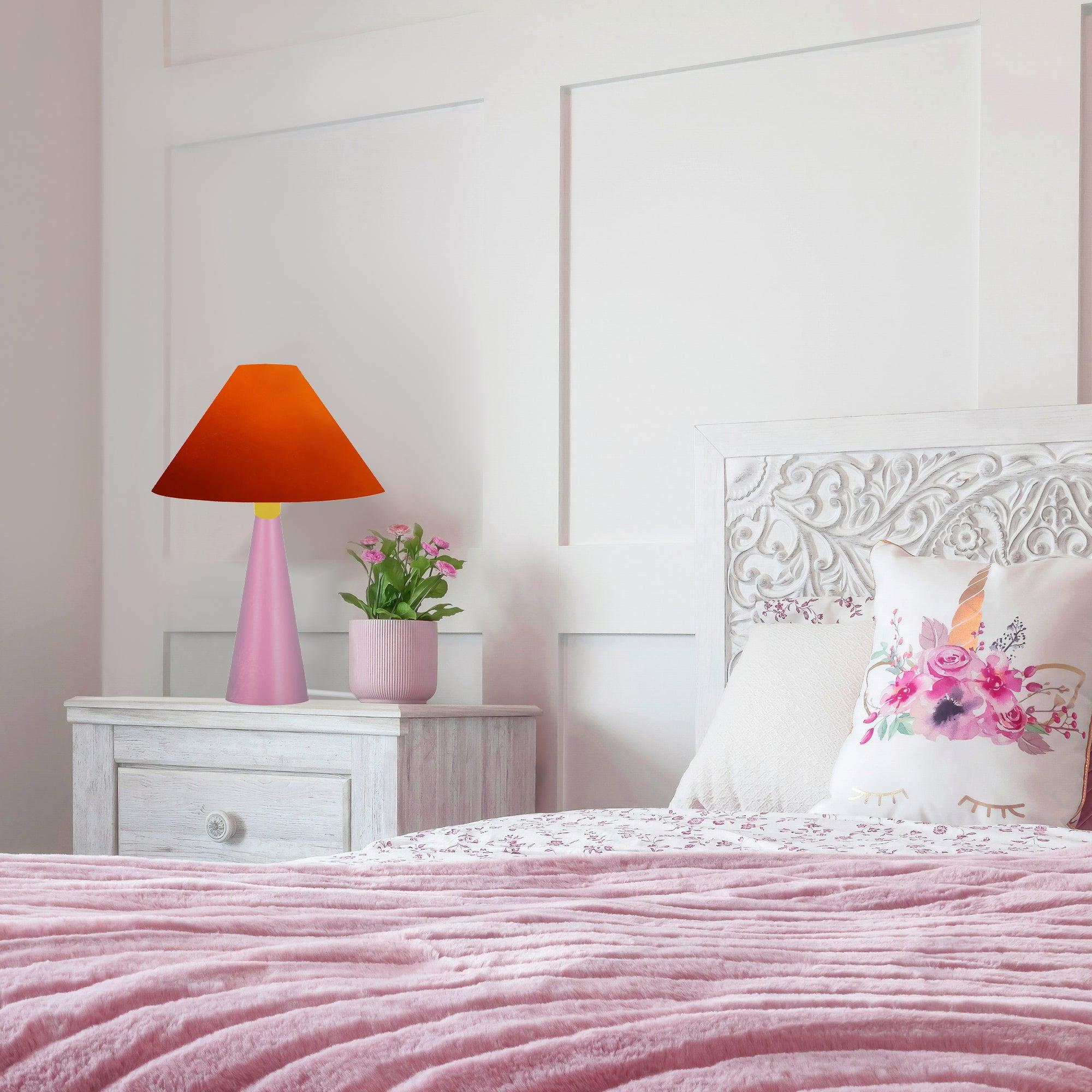 Lampe a Poser TOSEL ,métal,bois,Orange ,H37xD22xP22cm