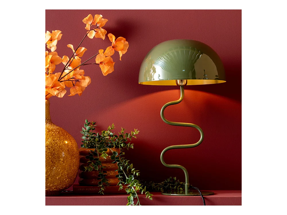 Waved Dome - Lampe à poser en métal et marbre - Vert kaki