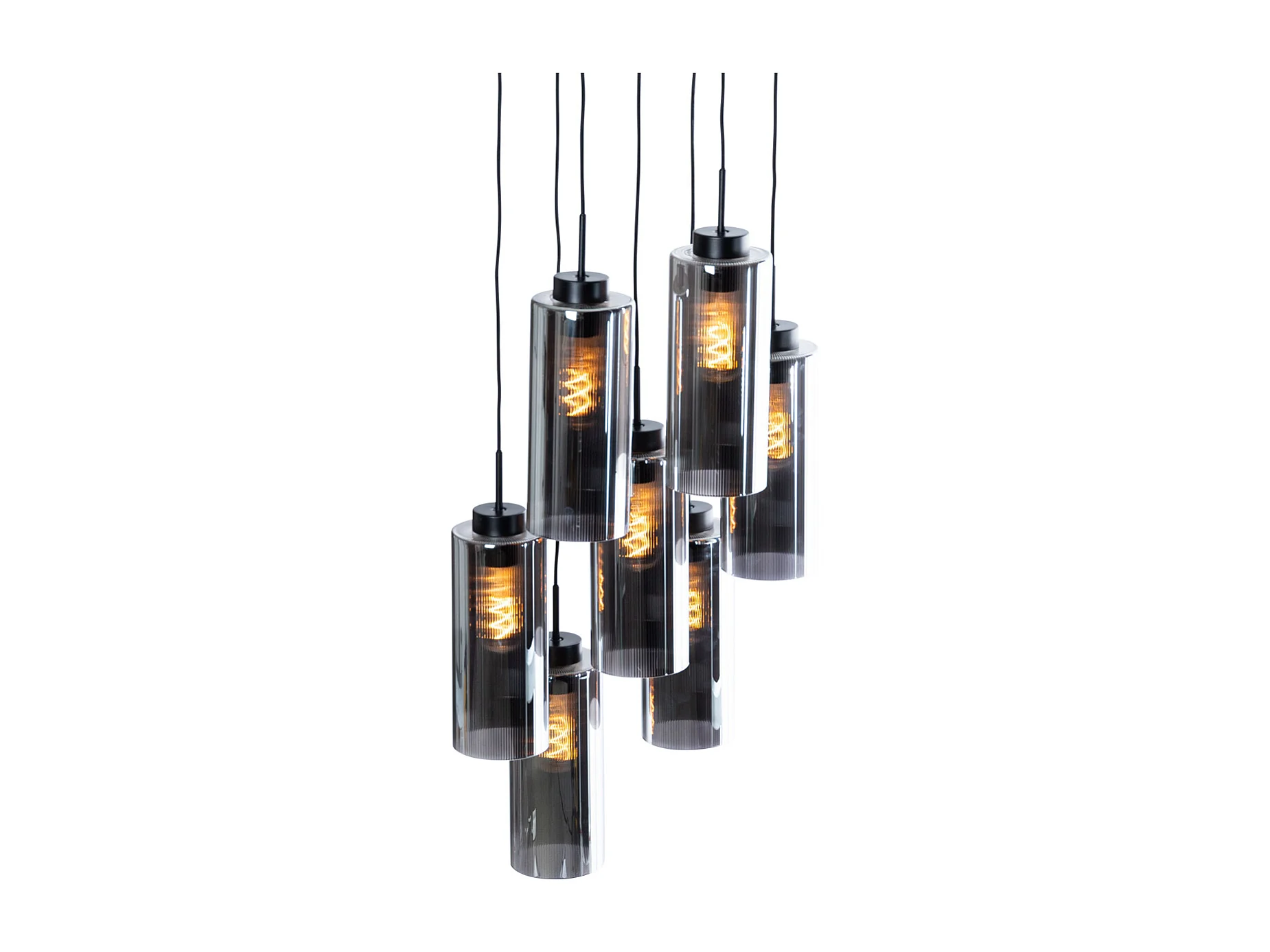 Suspension Art Déco noire avec verre fumé 7 lumières - Laura