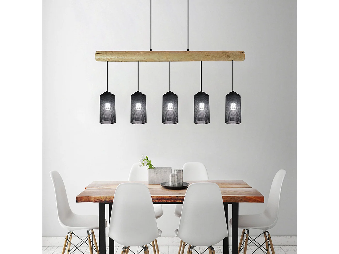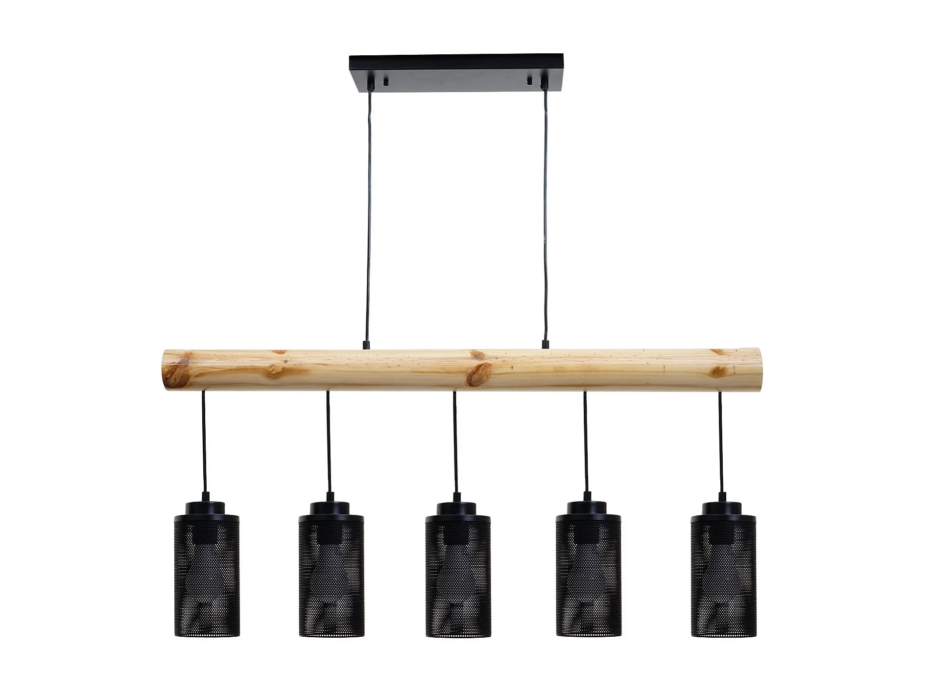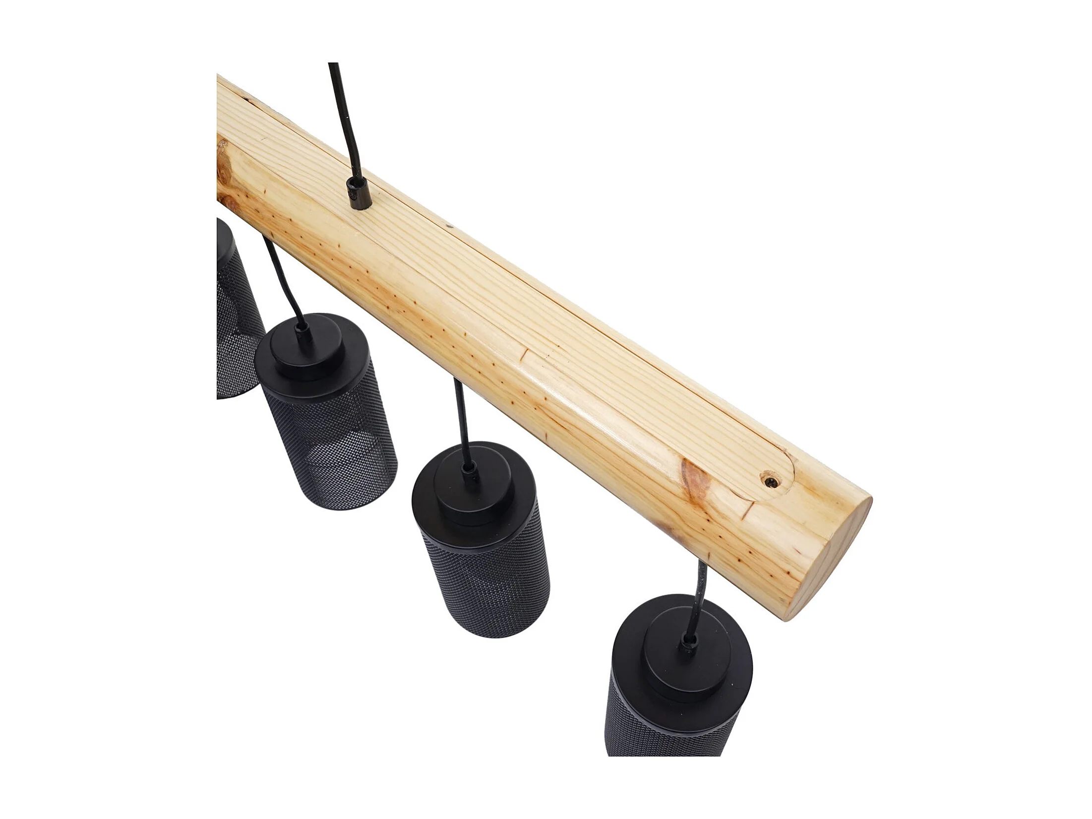 Lampe à suspension de plafond style vintage industriel en bois massif métal noir 5 abat-jour en tube 04_0003600