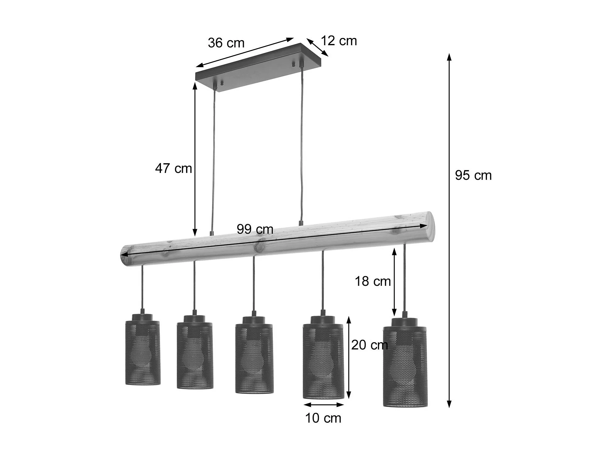 Lampe suspension plafonnier style industriel vintage bois massif métal noir 5 supports d'ampoules 04_0004051