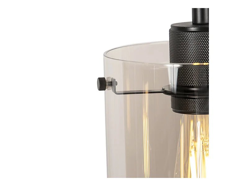 Lampe à suspension design noir avec verre fumé 4 lumières - Dôme