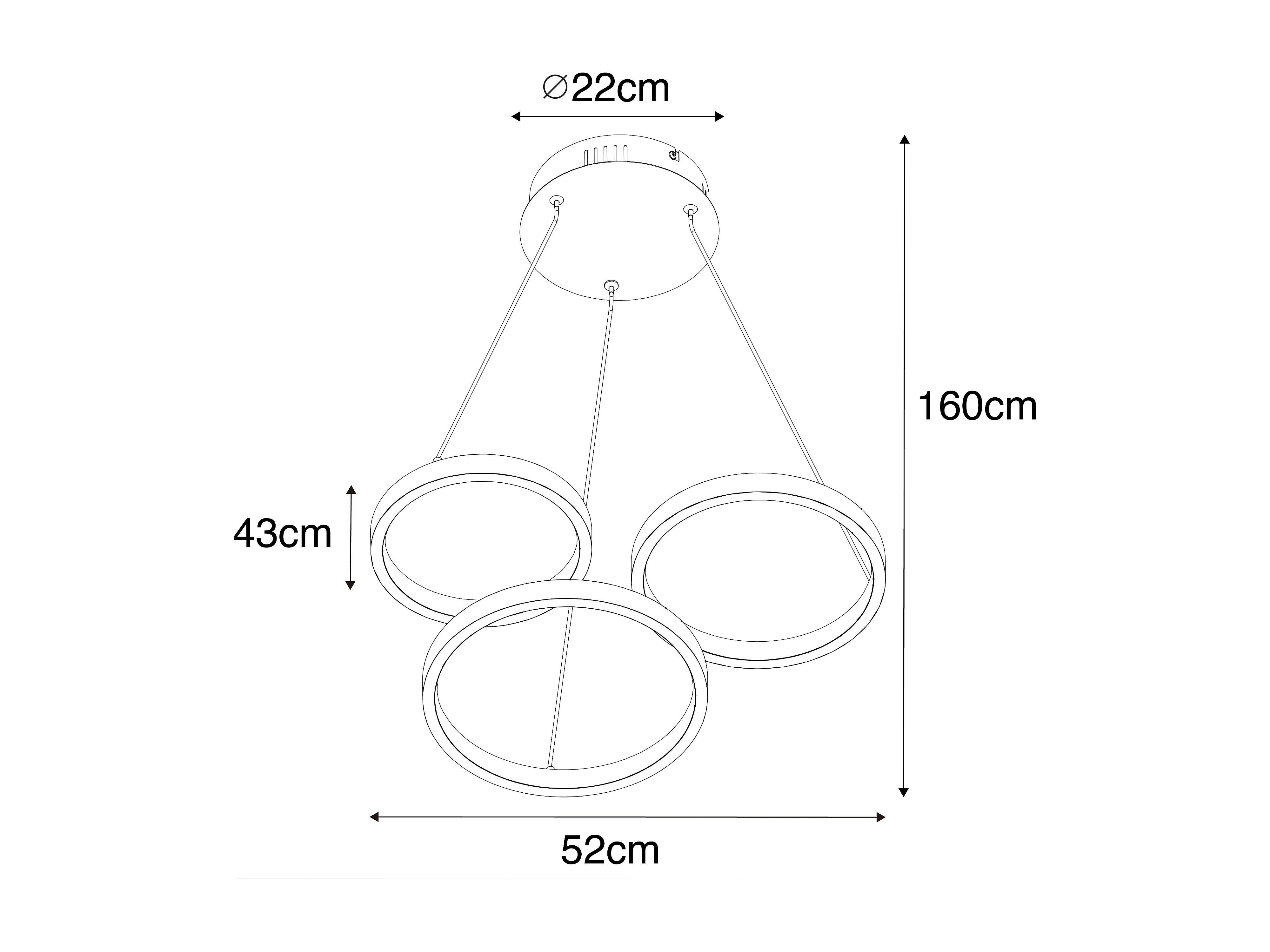 Suspension dorée avec LED à intensité variable 3 niveaux 3 lumières - Rondas