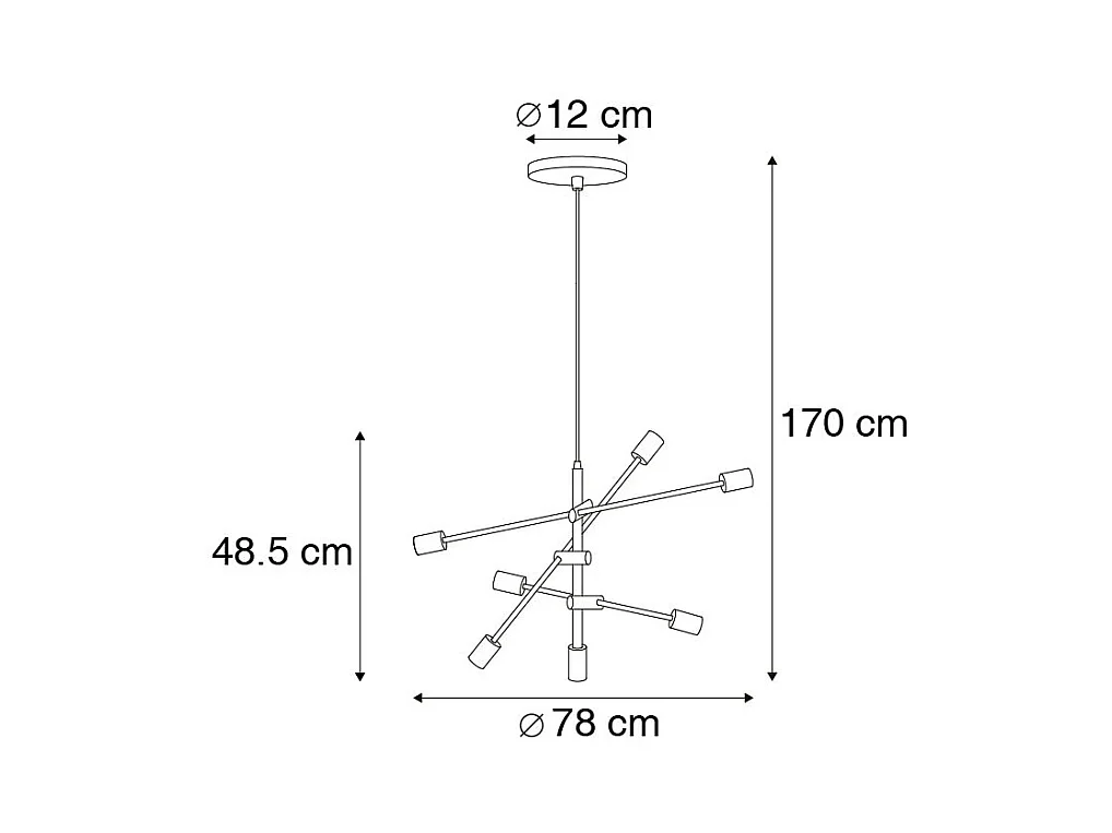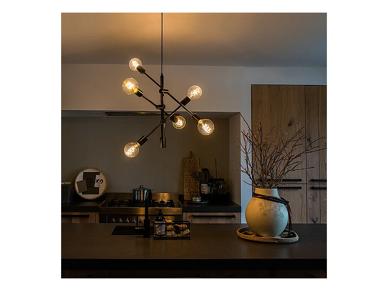 Lampe à suspension industrielle noire 6 lumières - Sydney