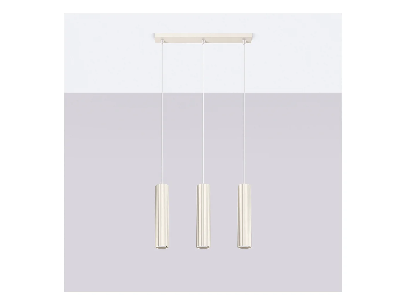 Lampe À Suspension Pastelo Moderne En Acier - 3 Sources Lumineuses - L.19,5 X H.104 Cm - Beige
