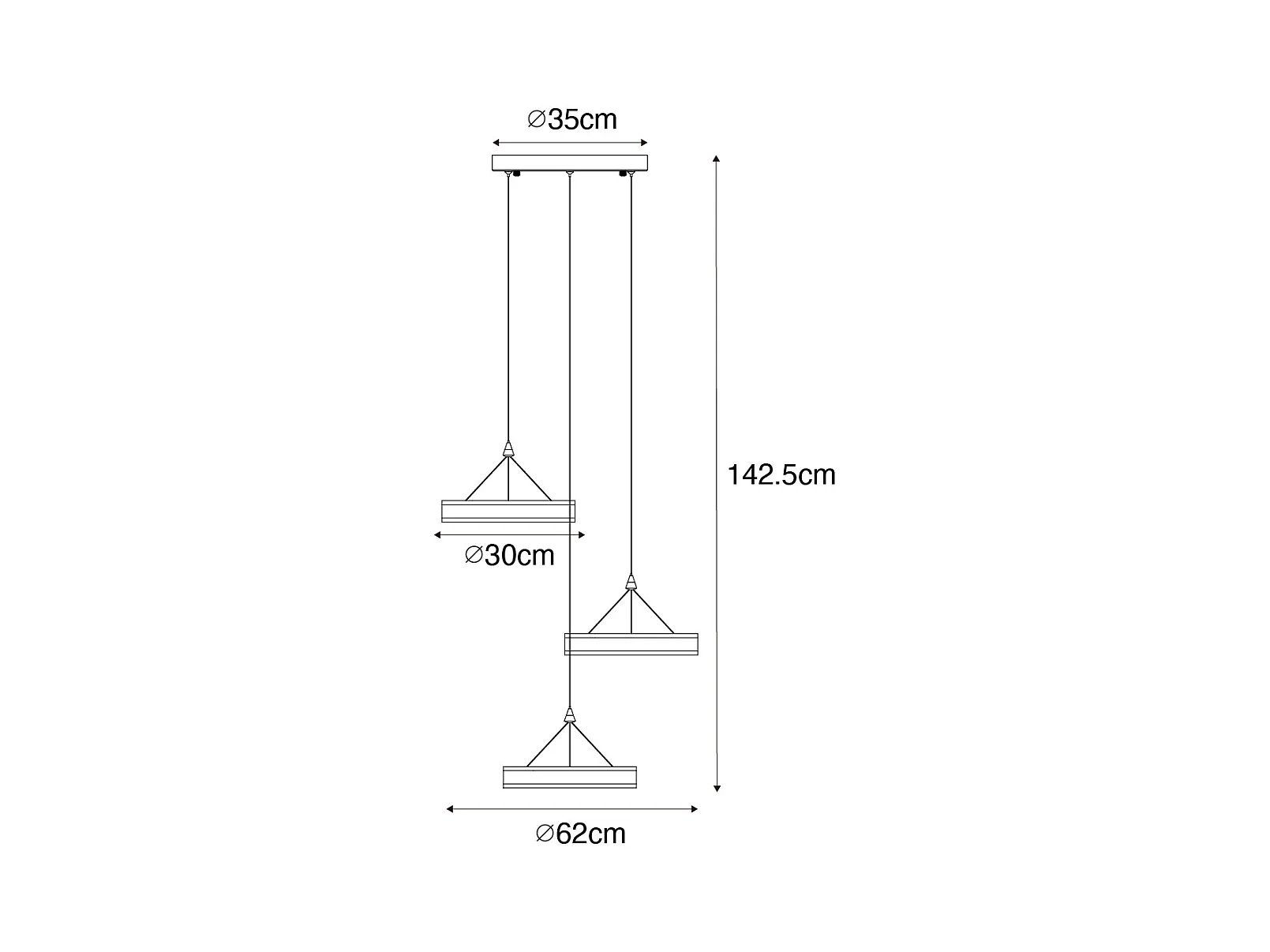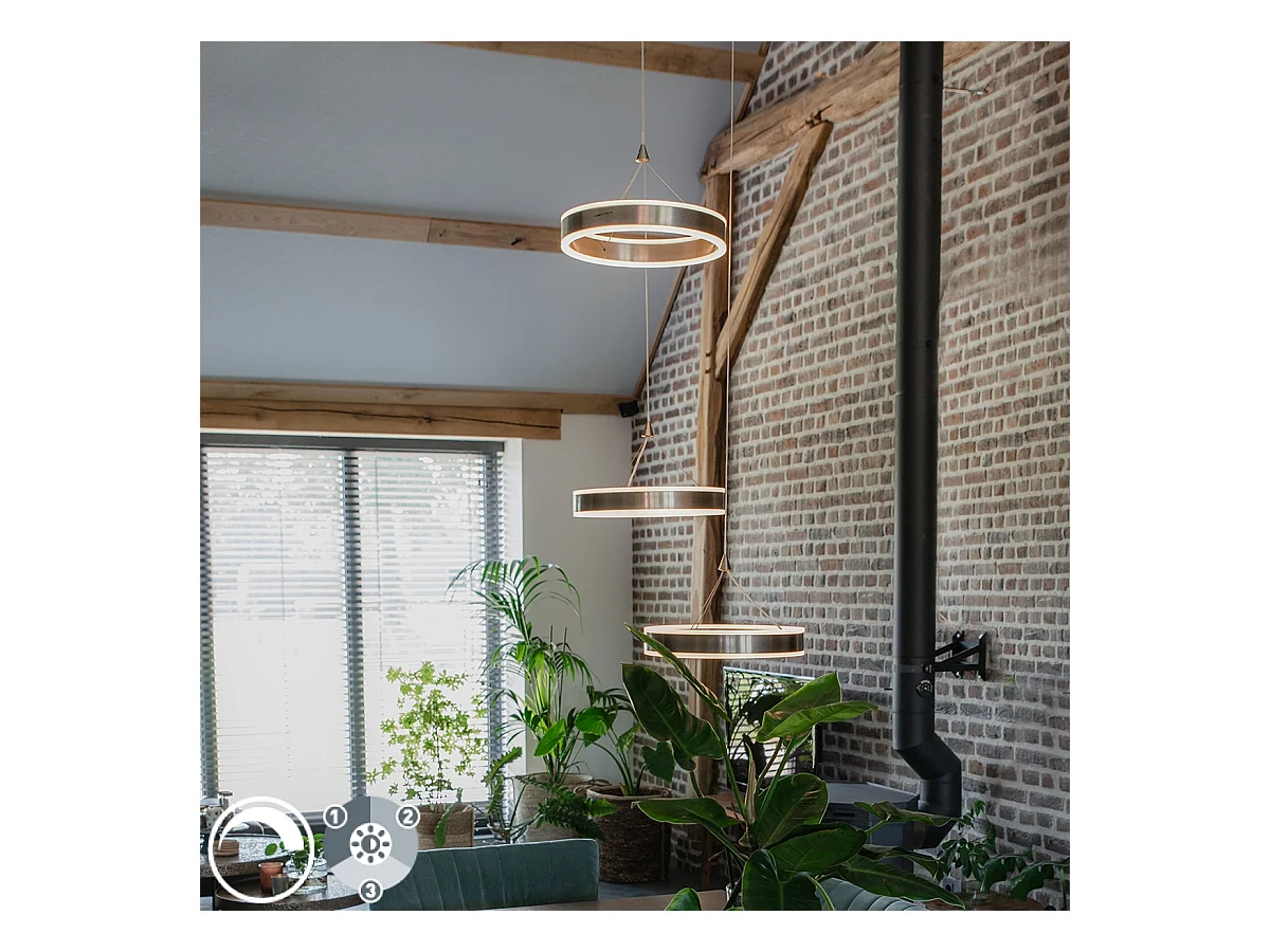 Lampe à suspension ronde en acier avec LED dimmable en 3 étapes 3 lumières - Lyani