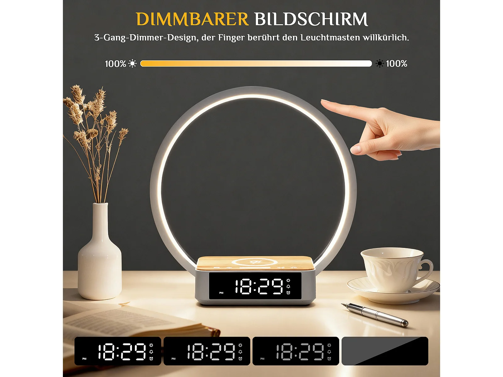 Lampe de bureau LED avec affichage de l'heure et fonction réveil - lumière réglable