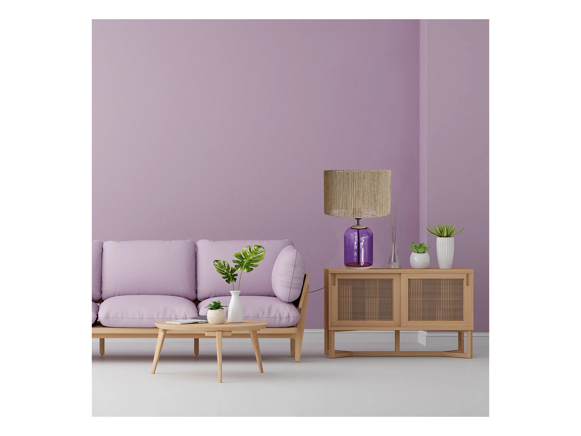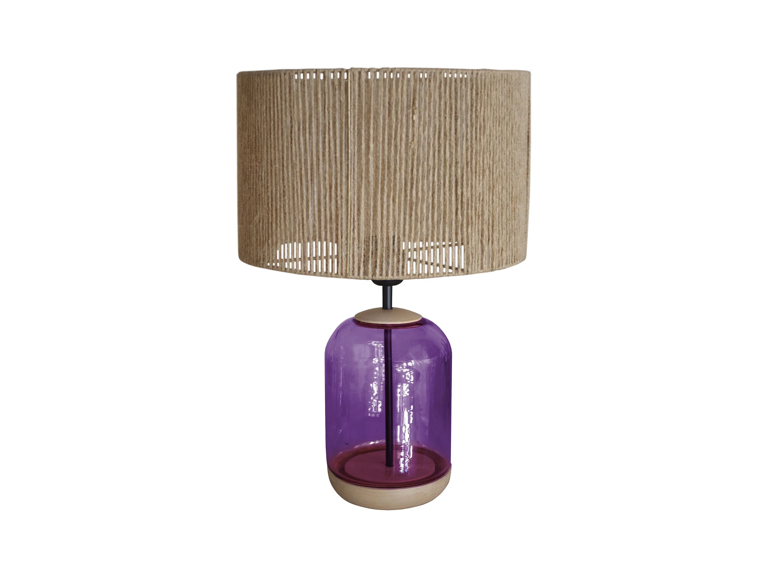Lampe de chevet évasé bois naturel,violet 40 cm.