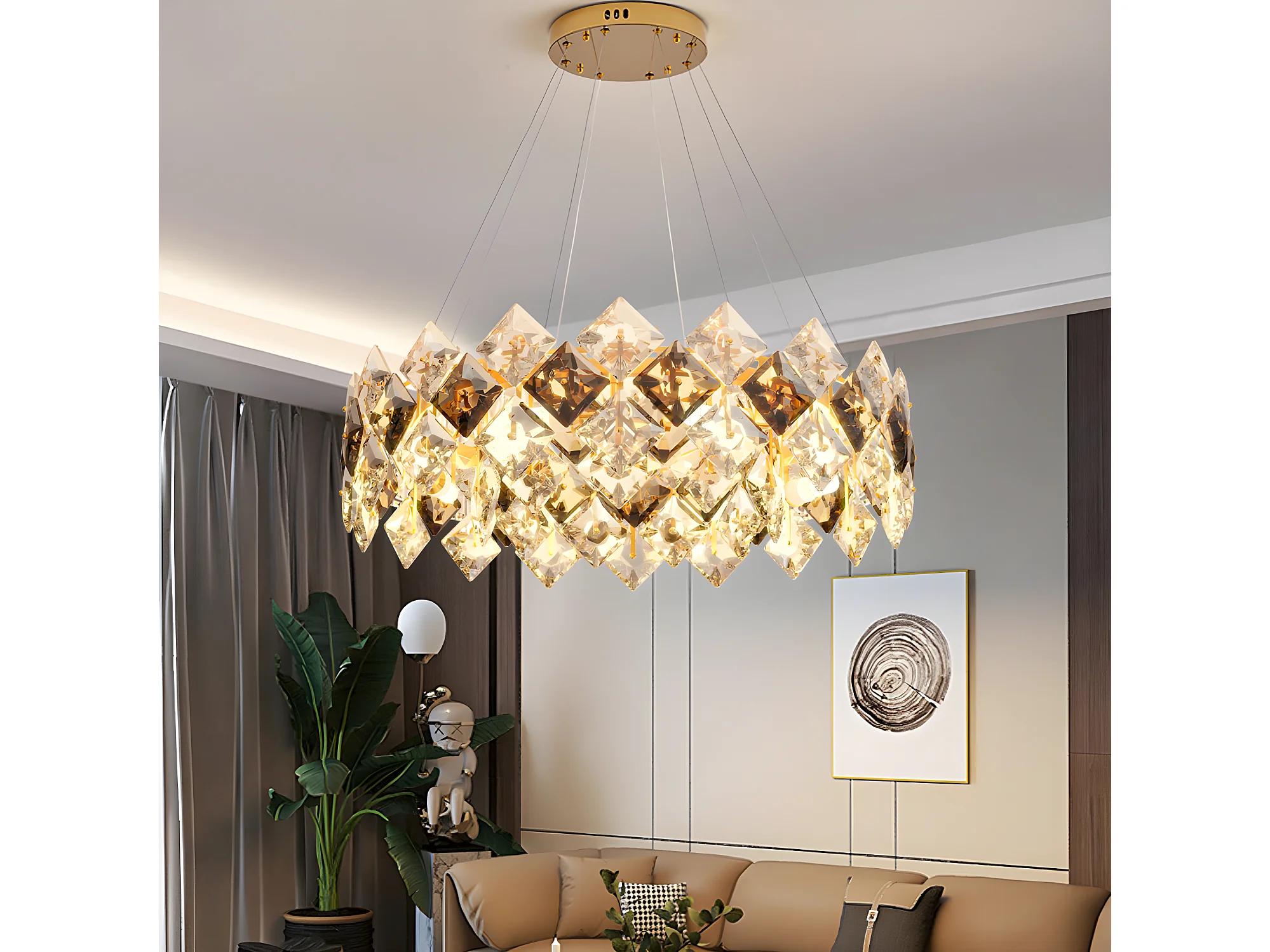 Lampe de plafond large - Suspension cristal LED design - Pendentif de plafond