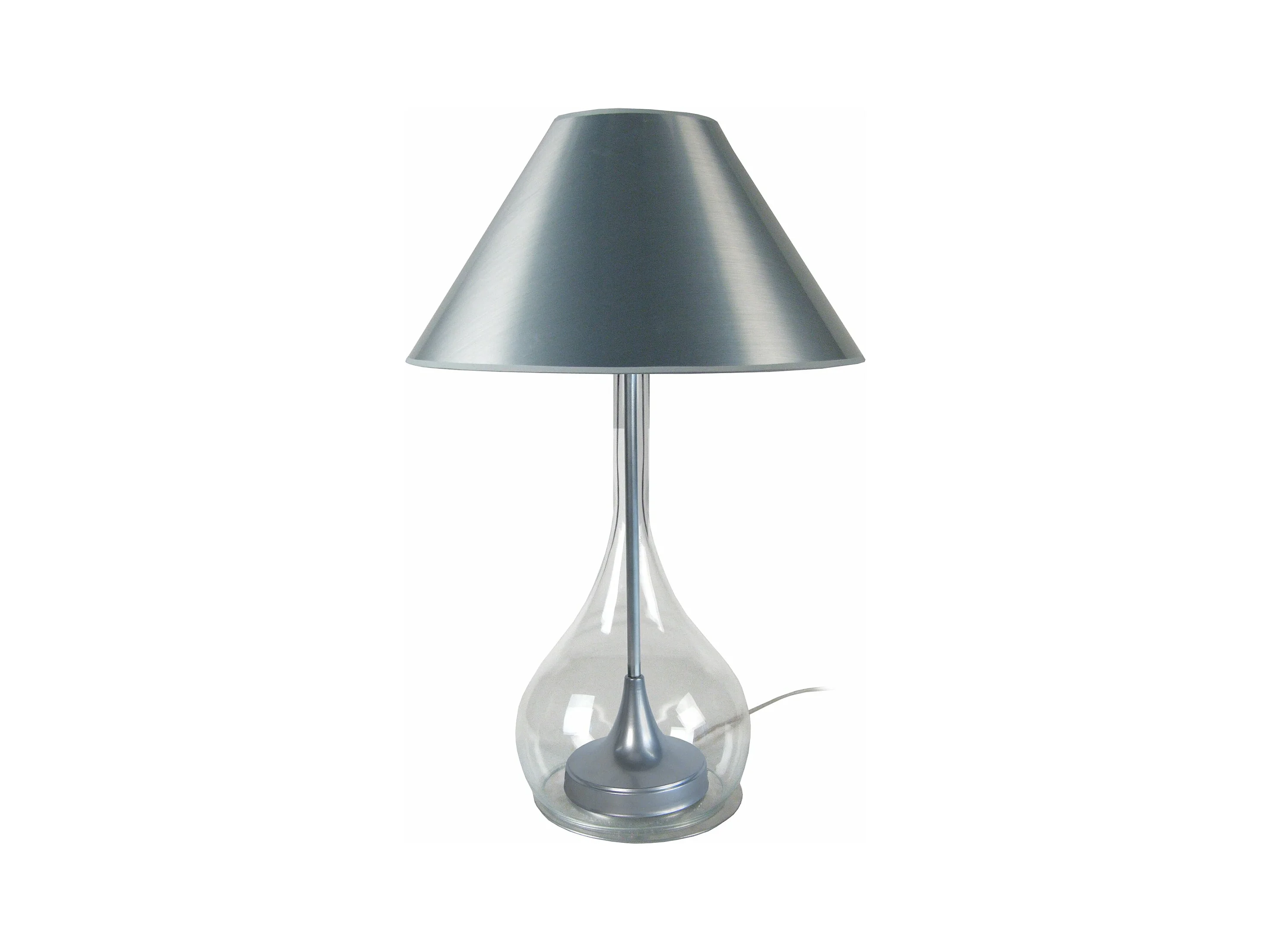 Lampe de salon vase verre transparent, aluminium 70 cm.