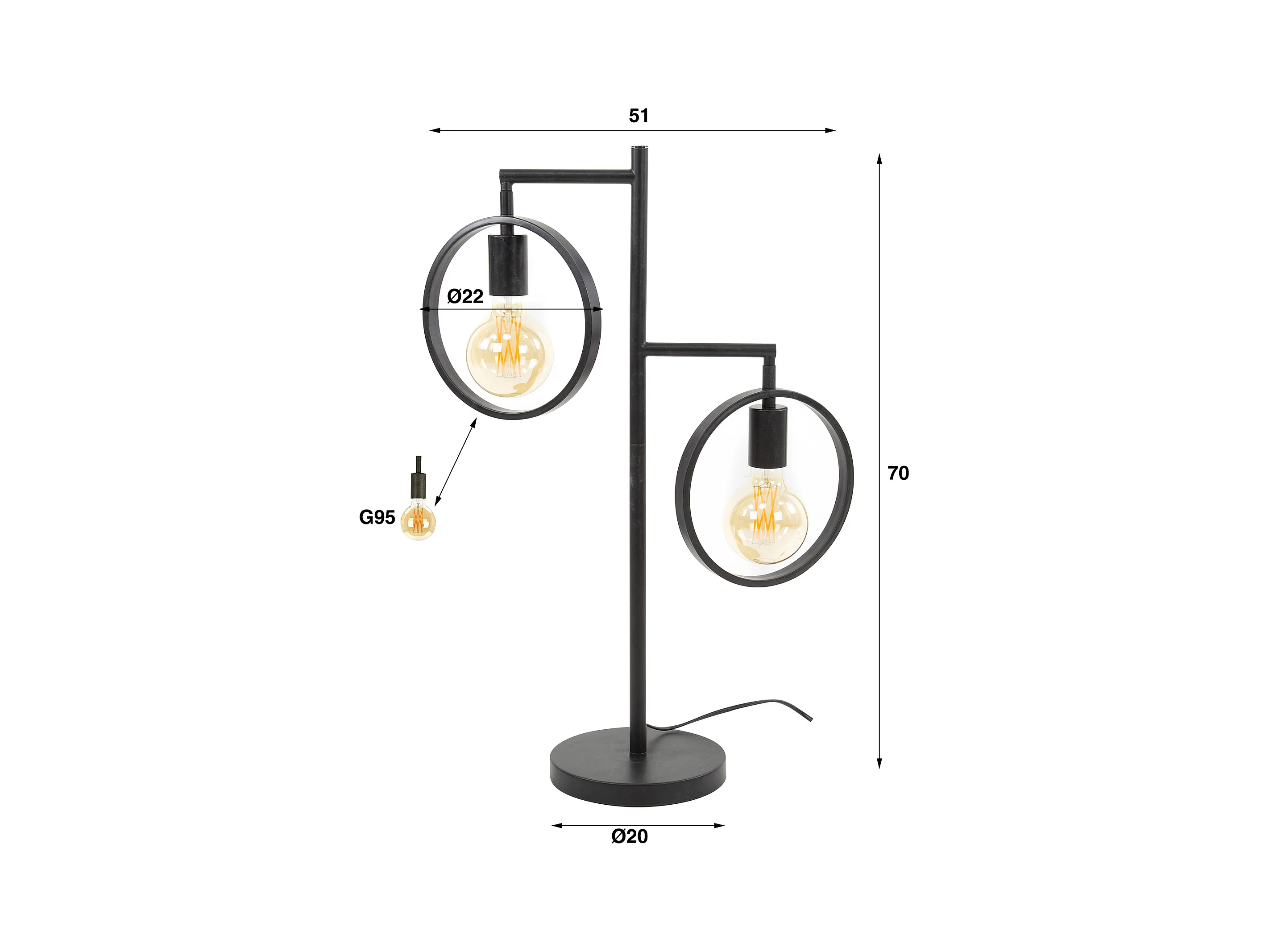 Lampe de table - Métal - Thermolaqué noir - 20x20x55 cm