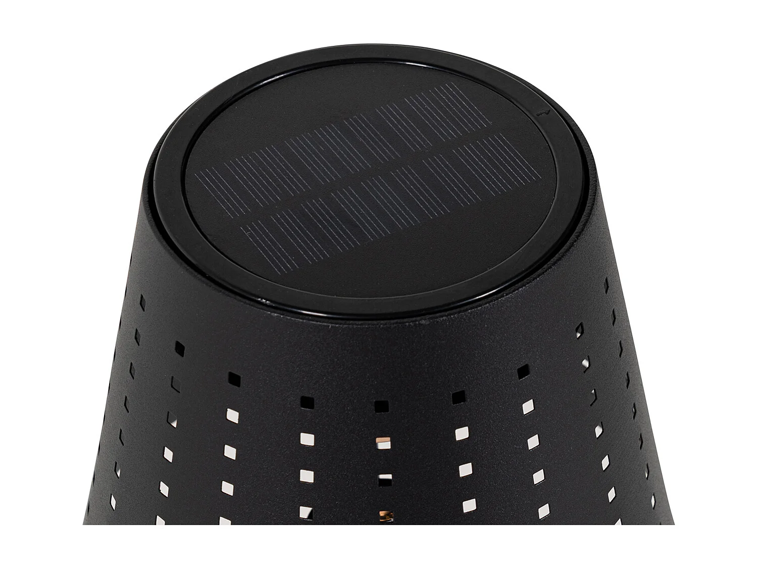 Lampe de table d'extérieur noire avec LED intégrée, 3 niveaux de luminosité, rechargeable et solaire - Ferre