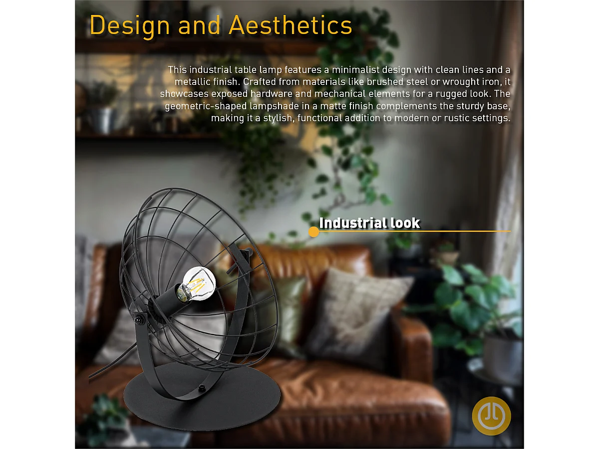 Lampe de table industrielle noire avec intérieur doré - Magna Eglip