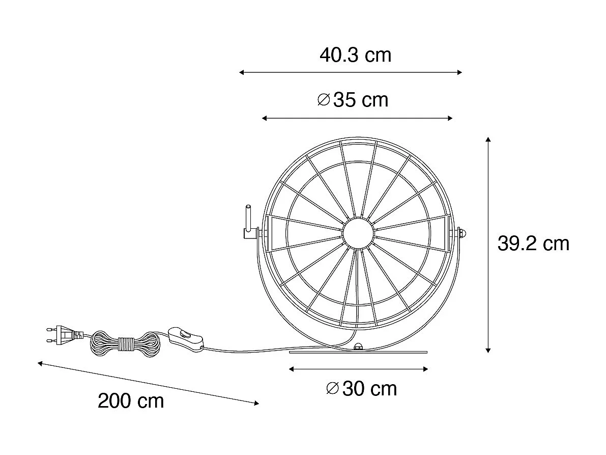 Lampe de table noire avec cadre Granny 30 cm réglable - Parte
