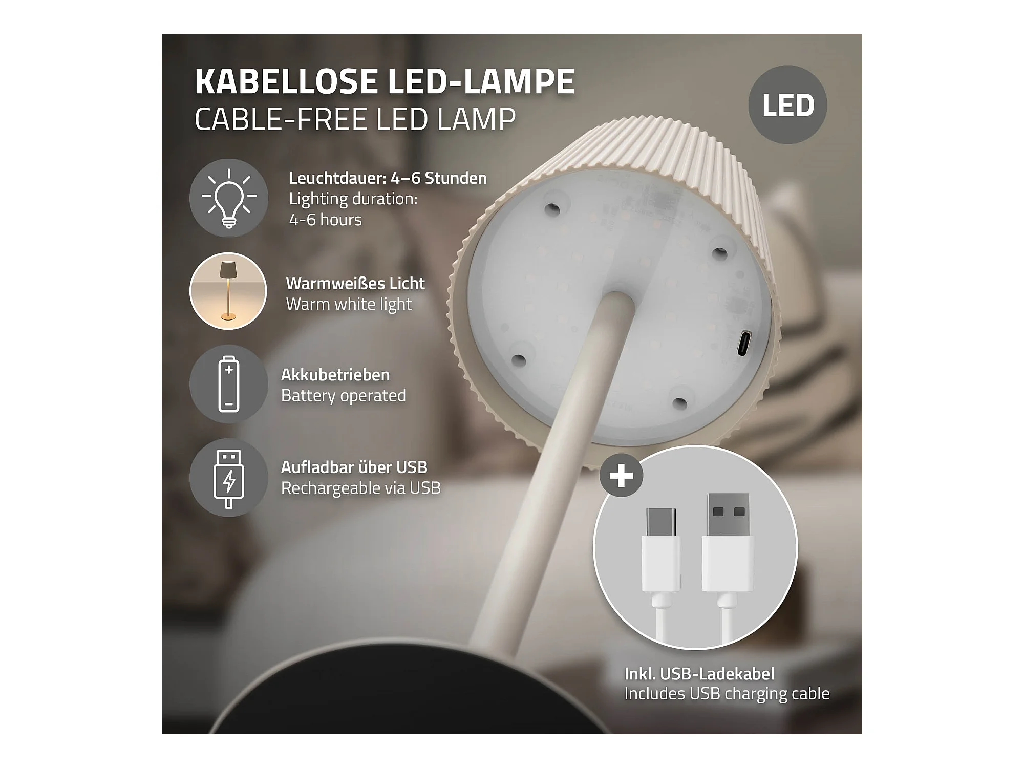 Lampe de table LED Ø8x34,5cm crème 3 couleurs d'intensité réglables capteur tactile batterie rechargeable USB-C éclairage de bureau sans fil portable