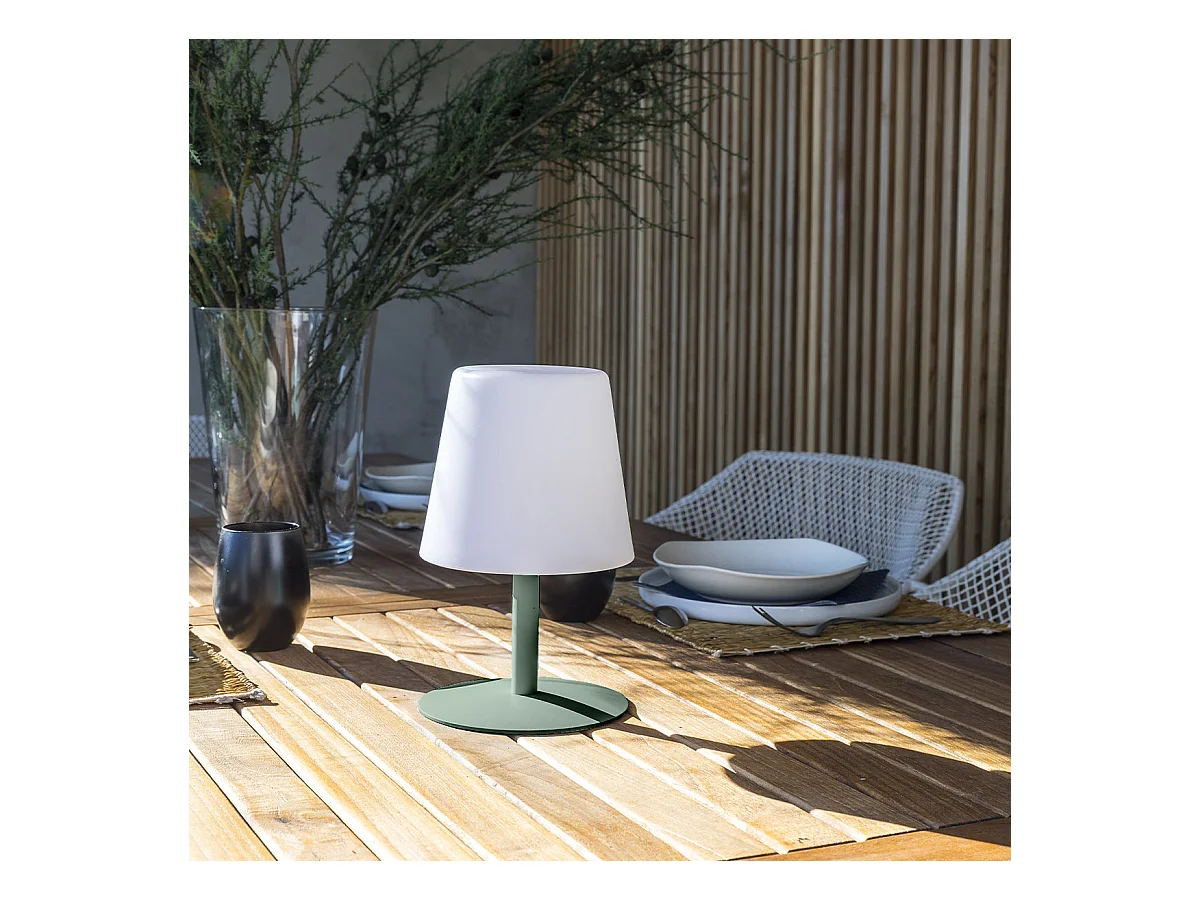 Lampe de table d'extérieur verte avec LED dimmable en 3 étapes rechargeable et solaire - Ferre