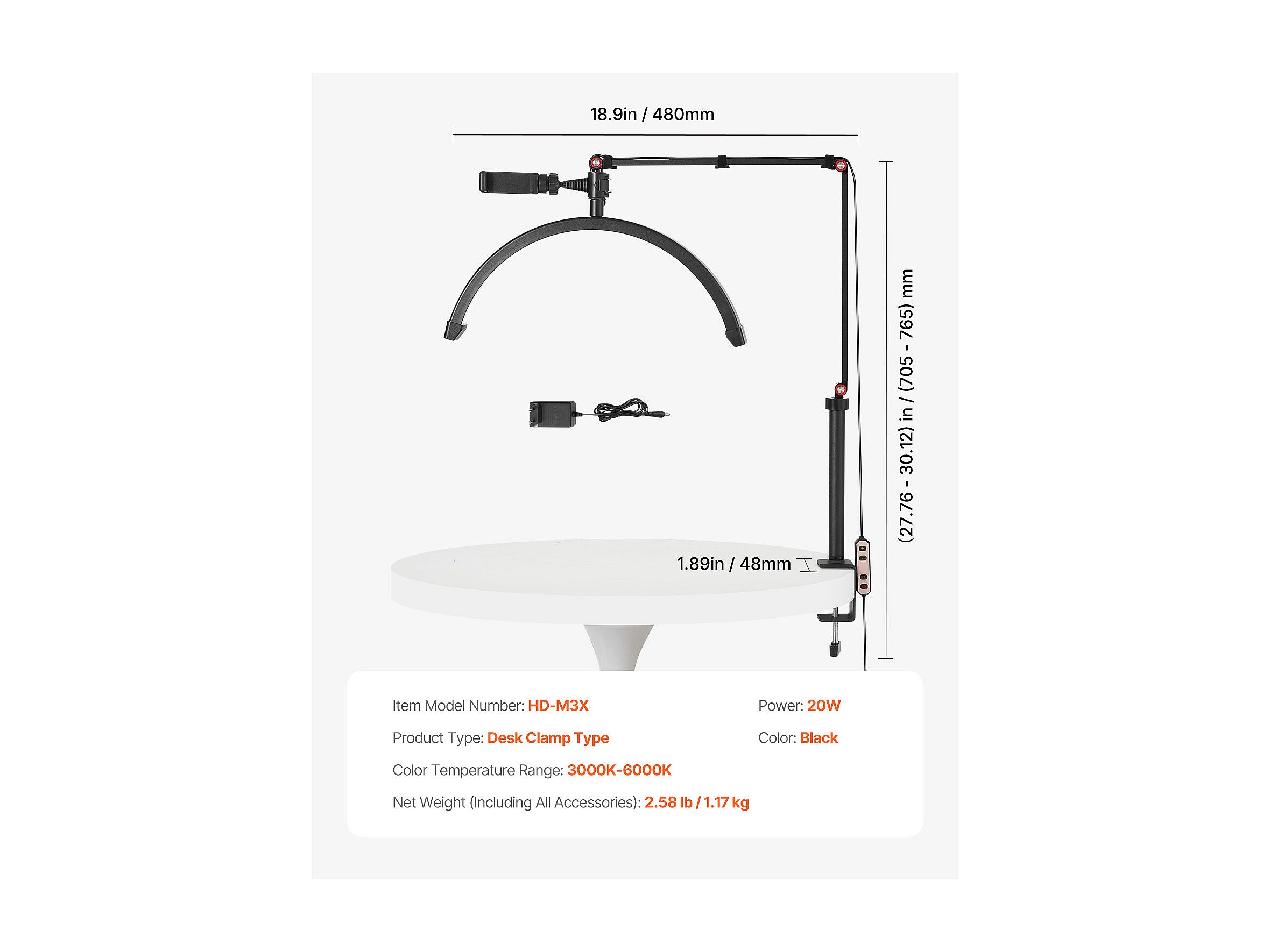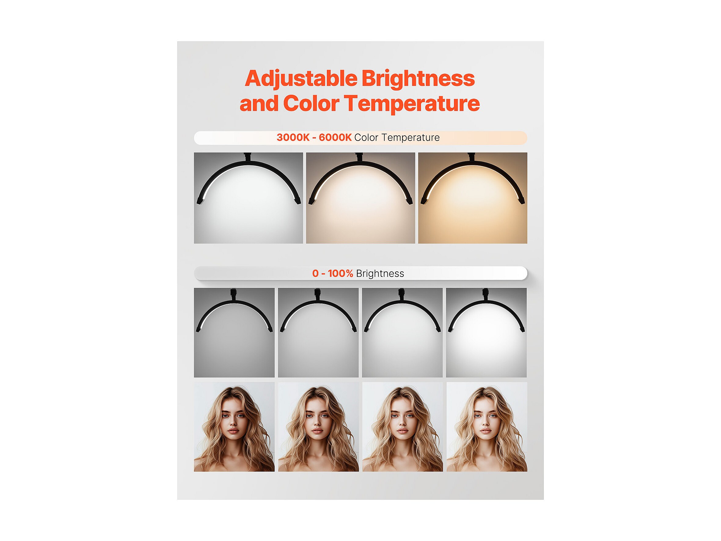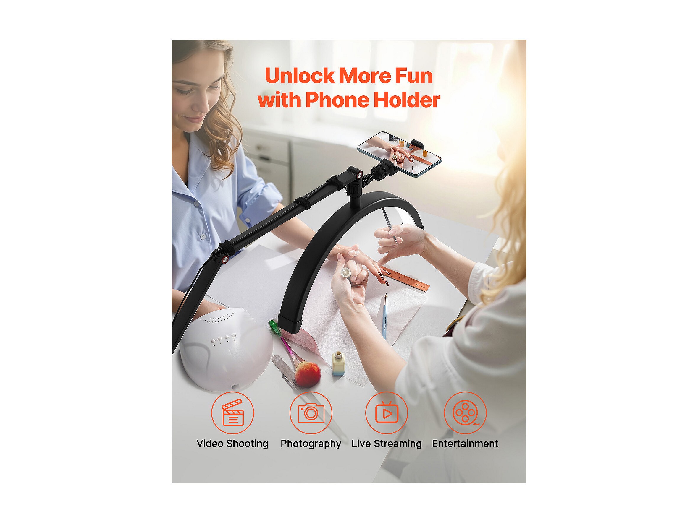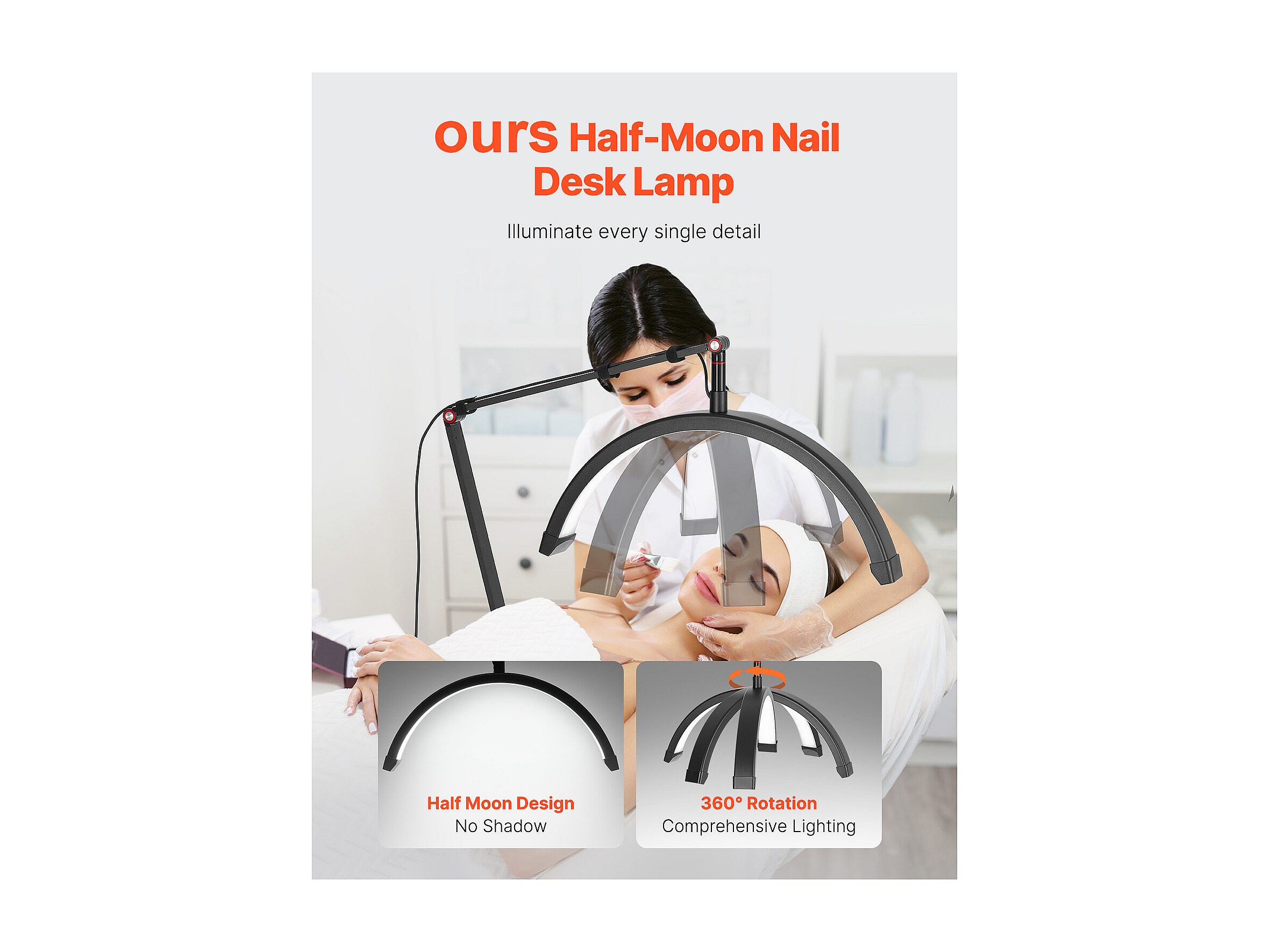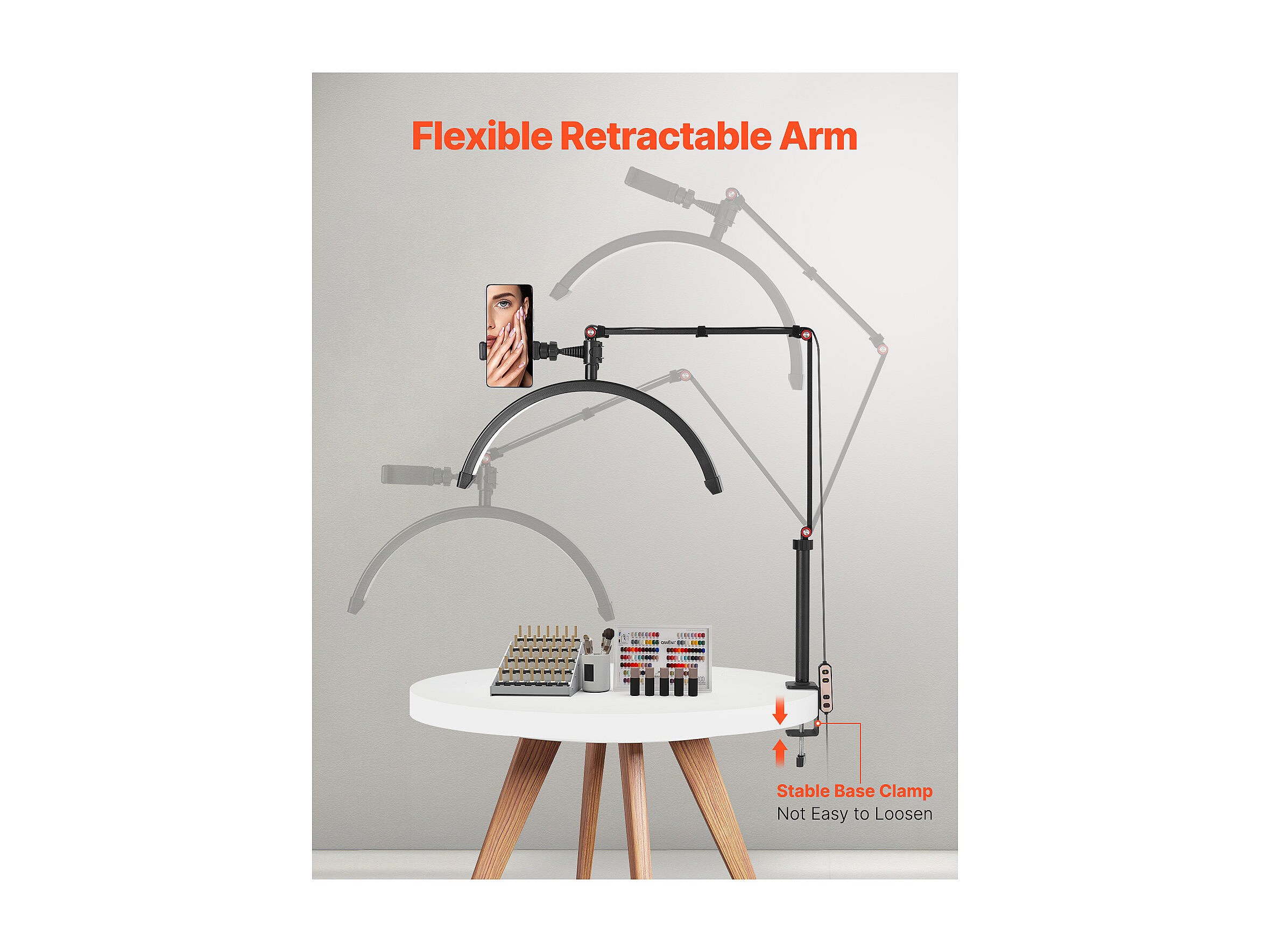 Lampe d’Esthéticienne, SucceBuy, Lampe à Cils Demi-lune 20 W à Pince avec Support pour Téléphone - LED Arquée