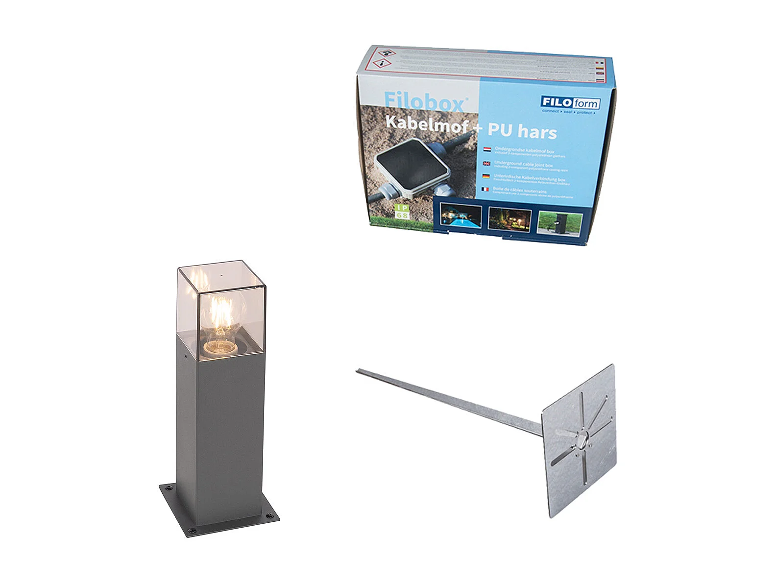 Lampe d'extérieur 30 cm grise avec piquet de terre et manchon de câble - Denmark
