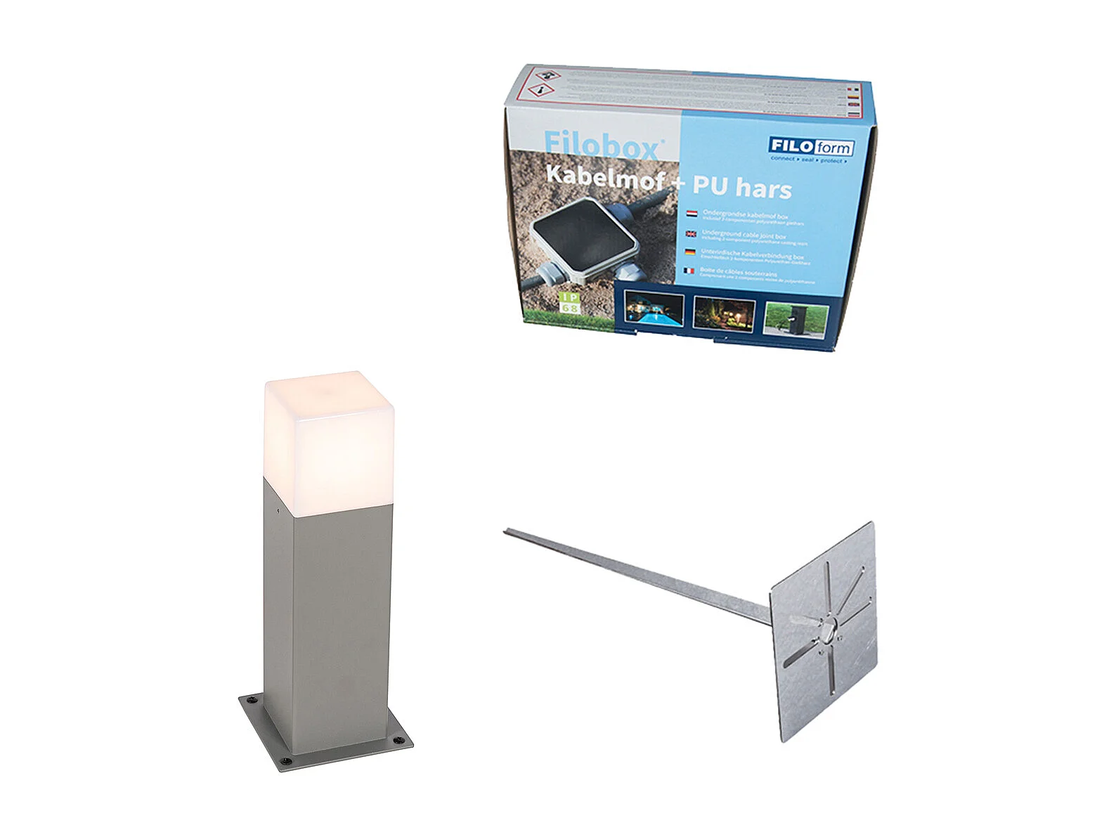 Lampe d'extérieur 30 cm grise avec piquet de terre et manchon de câble - Denmark