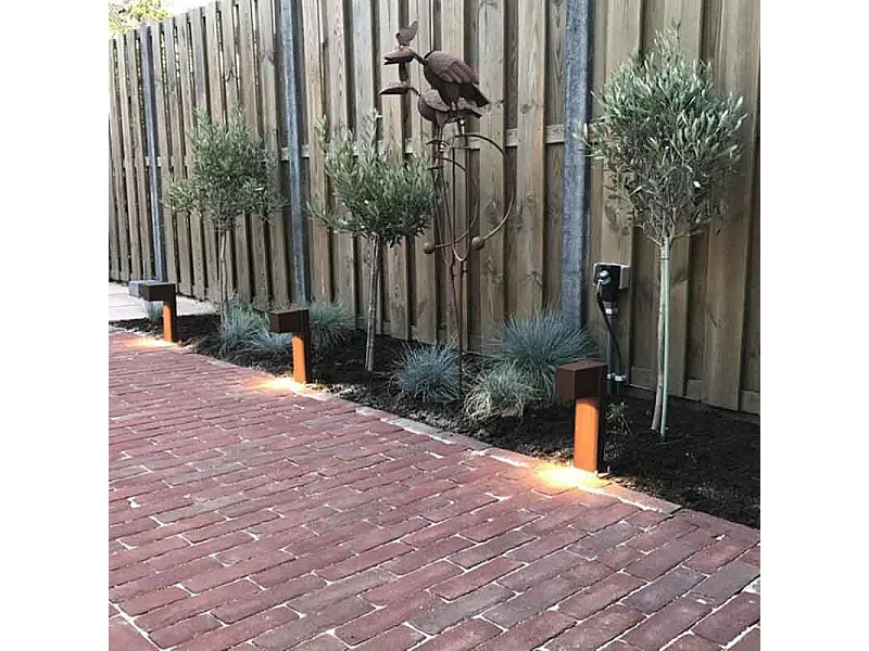 Projecteur de jardin industriel brun rouille carré IP65 - Lennard