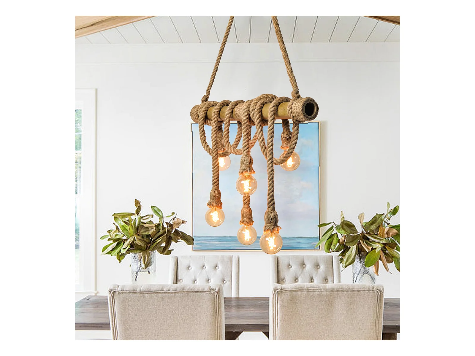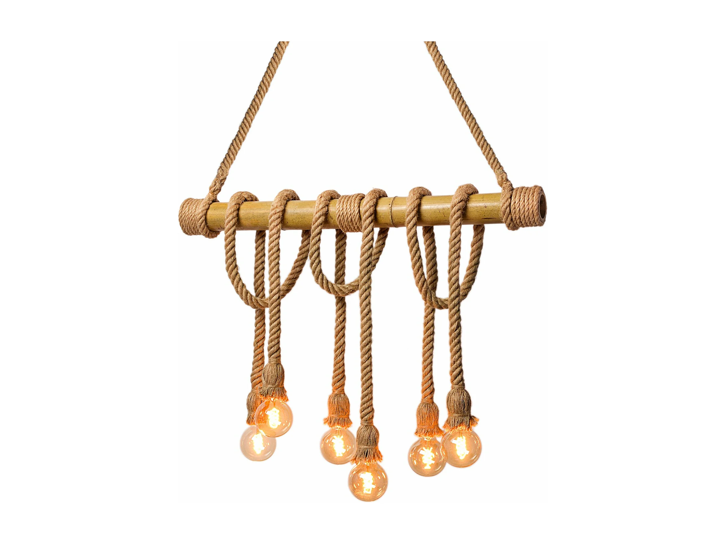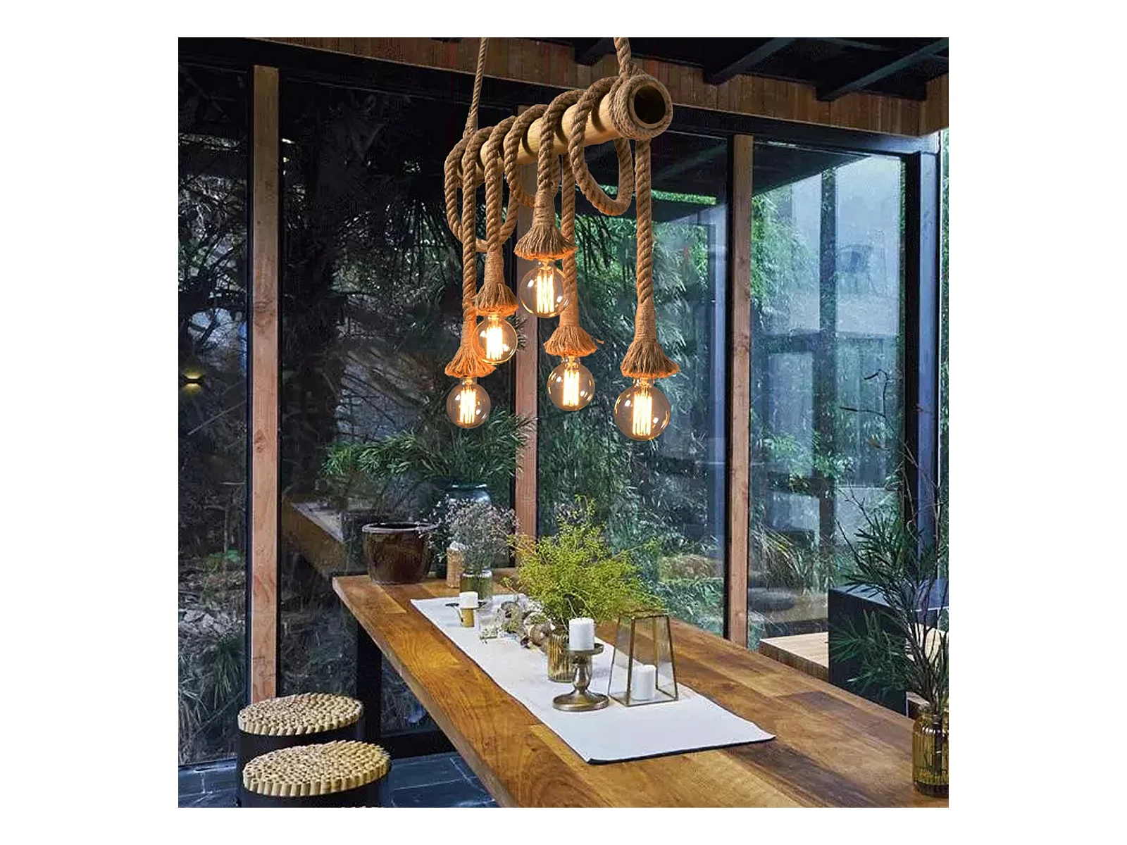 Lampe de plafond en rotin - Lampe suspendue de stile Boho Bali - An Bois naturel