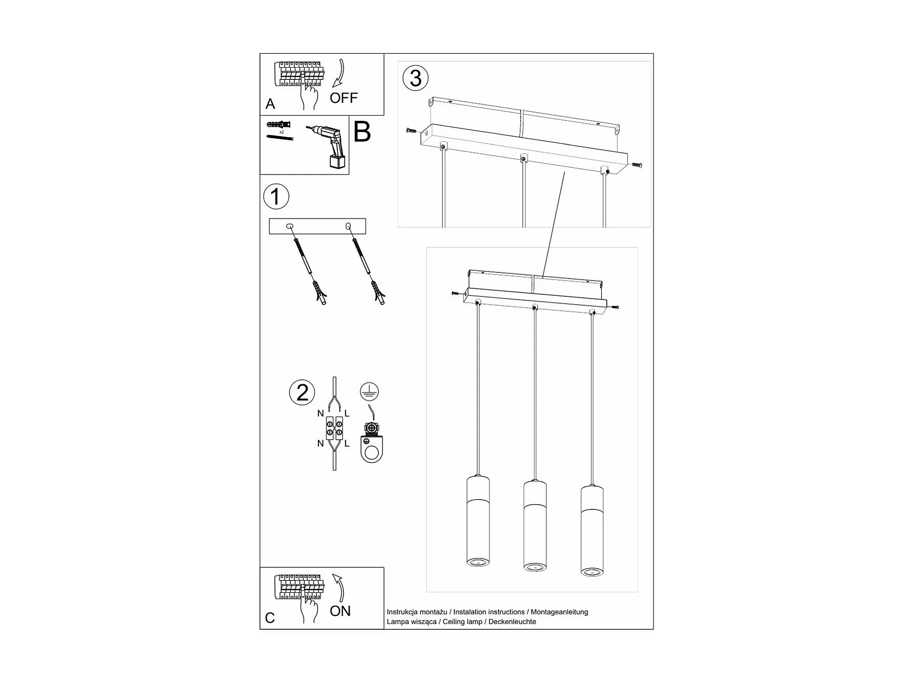 Lampe pendante Thalassa 3 gris