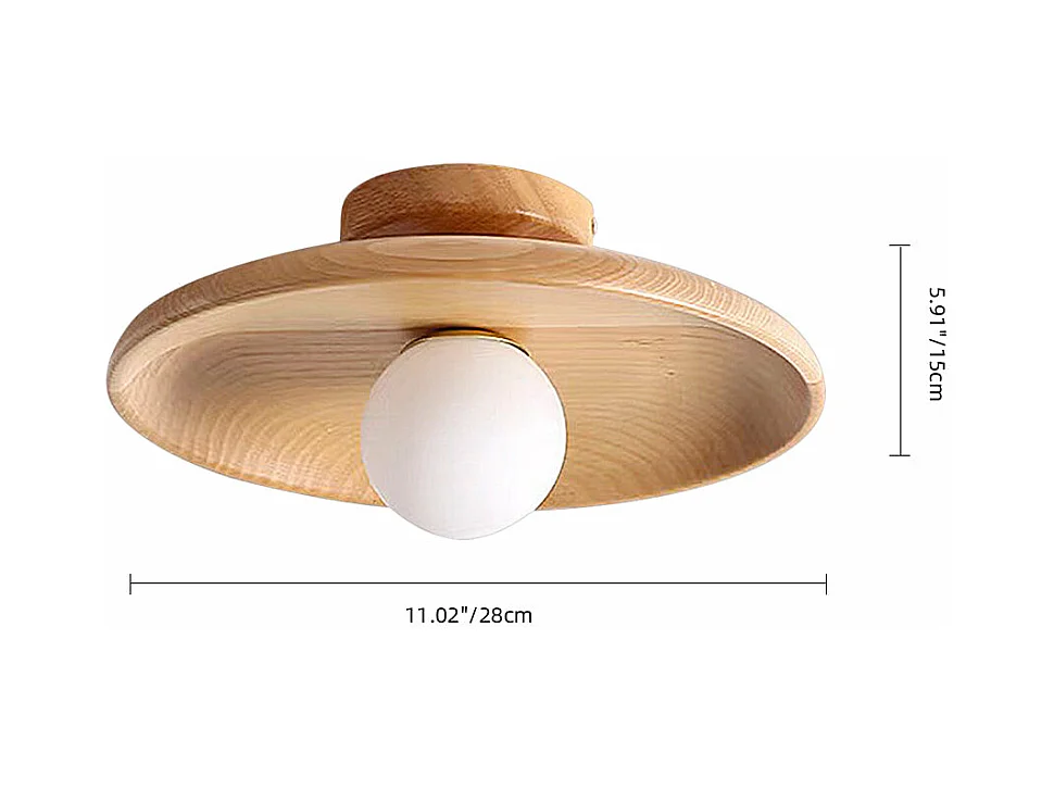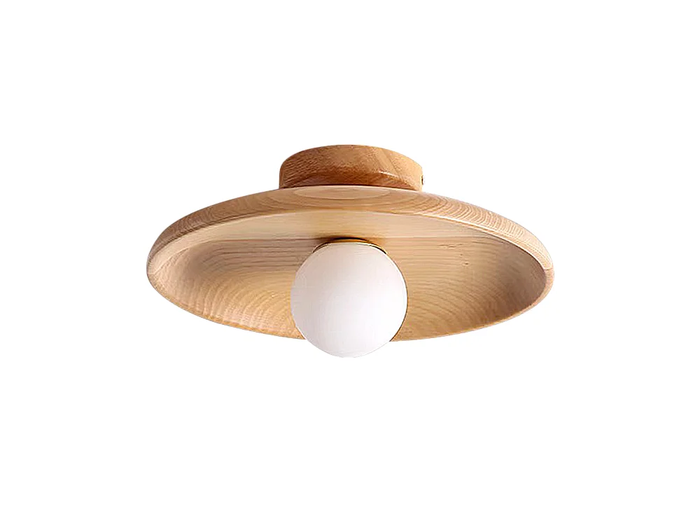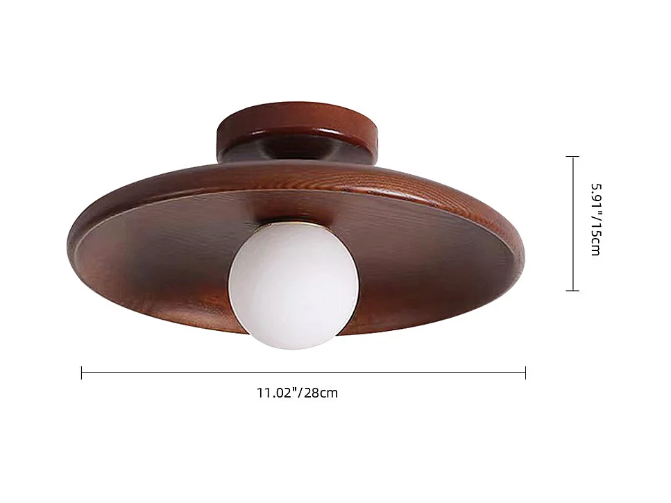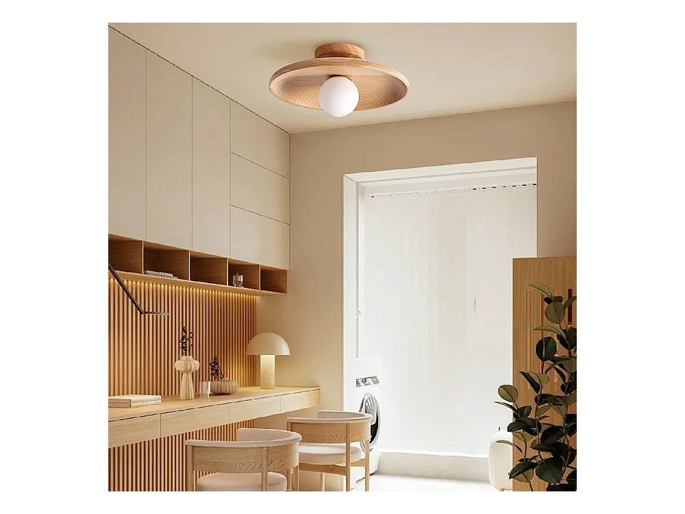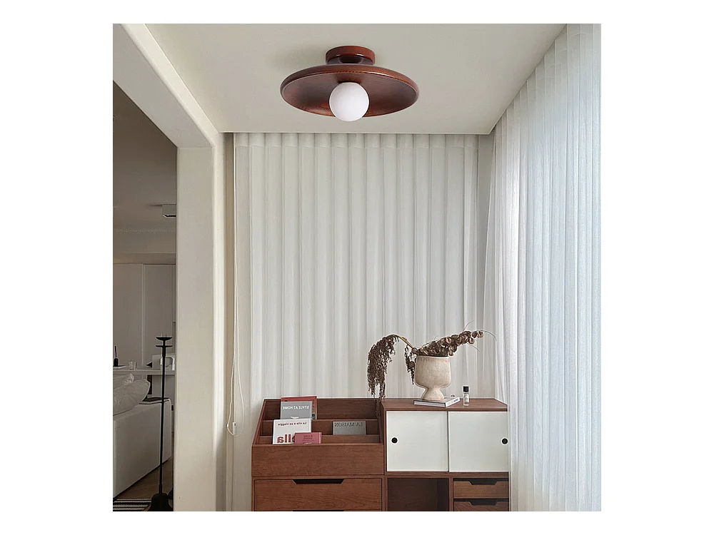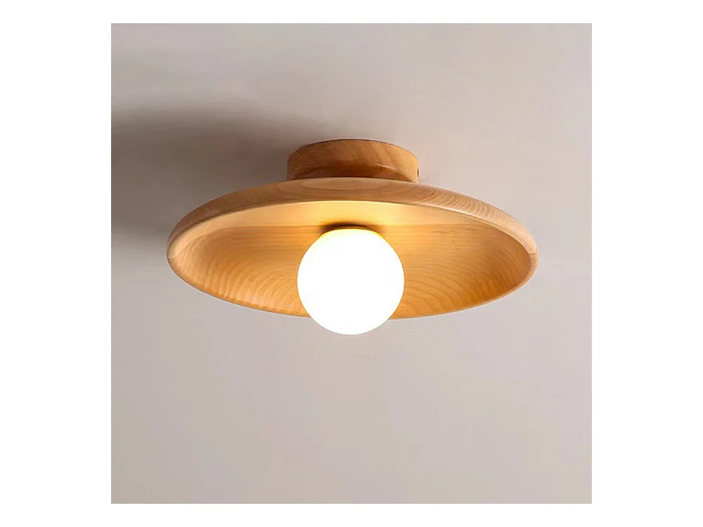 Lampe semi-encastrée en bois,allée entrée couloir balcon plafond luminaire, brun, d28cm x h15cm