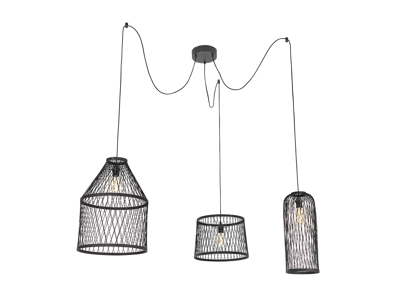 Suspension d'extérieur rustique en rotin noir 3 lumières - Calamus