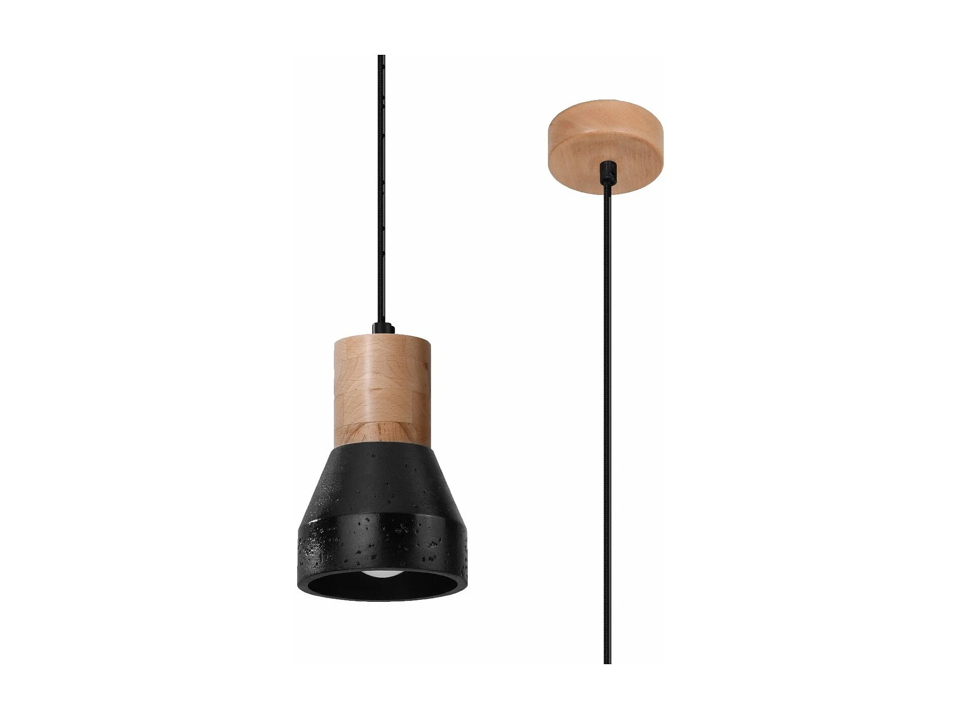 Lampe À Suspension Caro Moderne En Bois - 1 Sources Lumineuses - L.50 X H.145 Cm - Bois Naturel/Noir