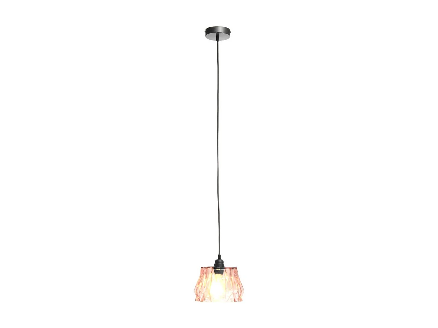 Suspension conique verre rose 85 cm.