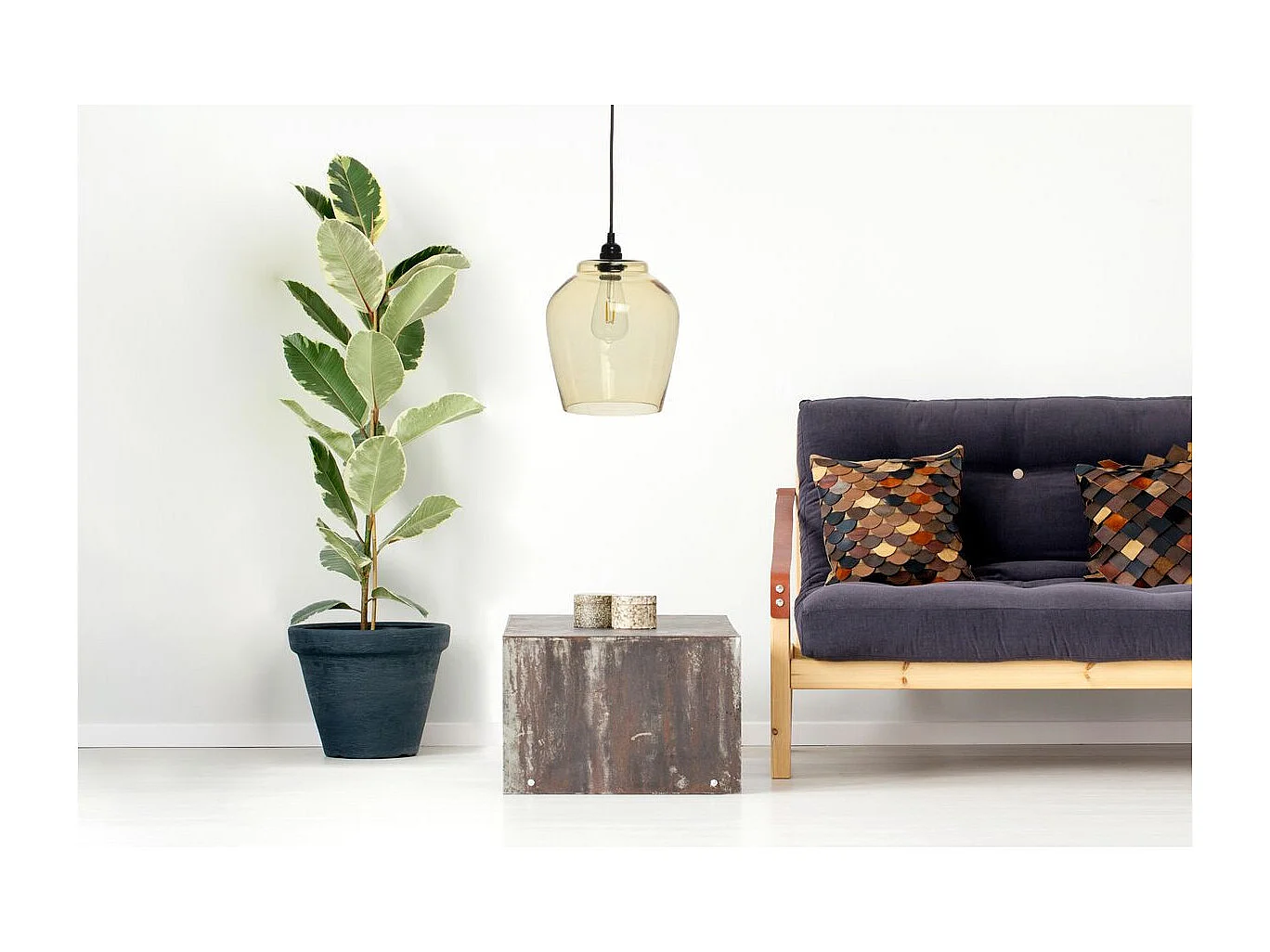 Suspension design noire avec laiton et verre ambré - Zuzanna