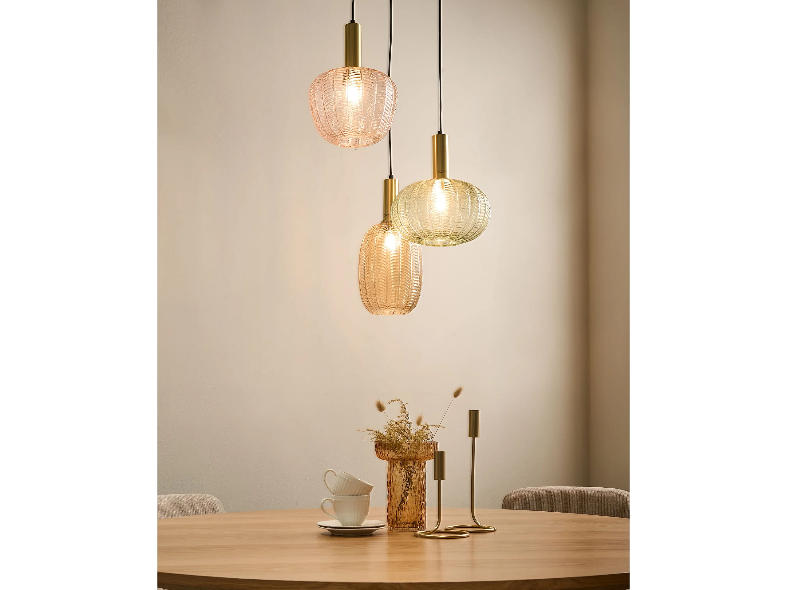 Plafonnier araignée 3 lampes Prismol Bois Naturel et Métal Jaune, Bleu et Vert