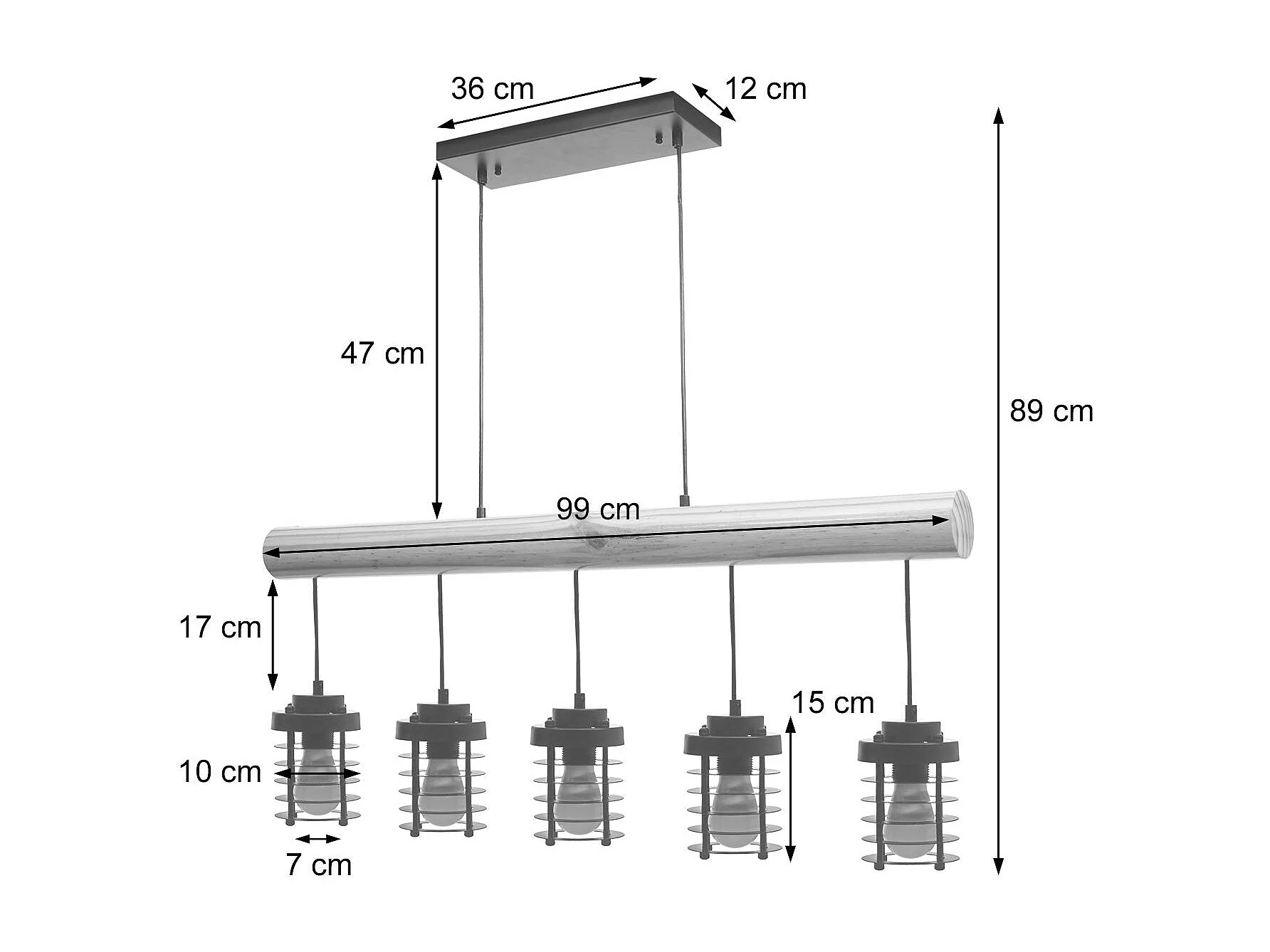 Lampe suspension plafonnier style industriel vintage bois massif métal noir 5 supports d'ampoules 04_0004051