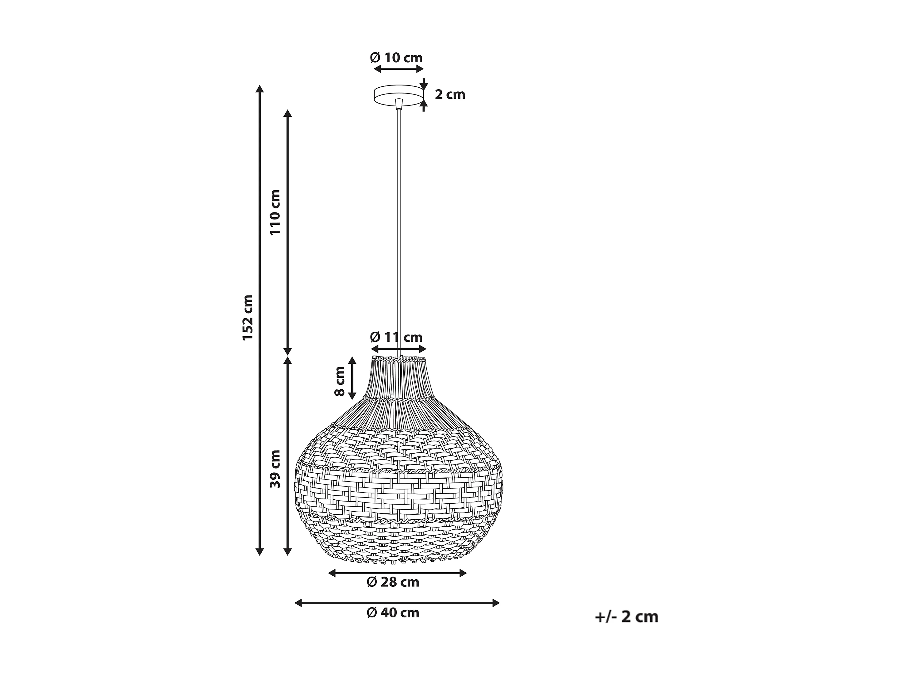 Lampe Suspension en Jonc "Cône" 82cm Blanc