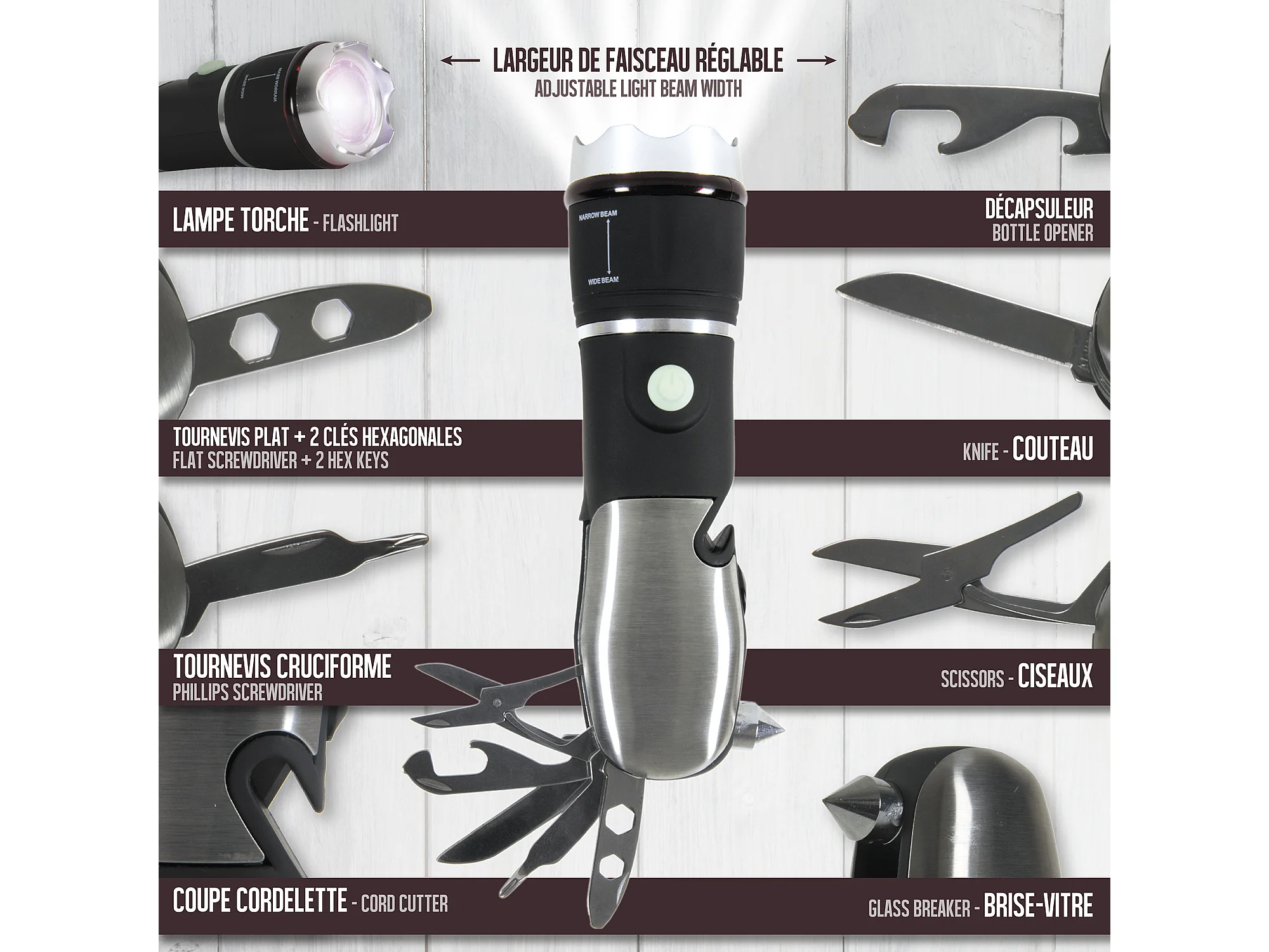 Lampe Torche Multifonction 8en1 Noir