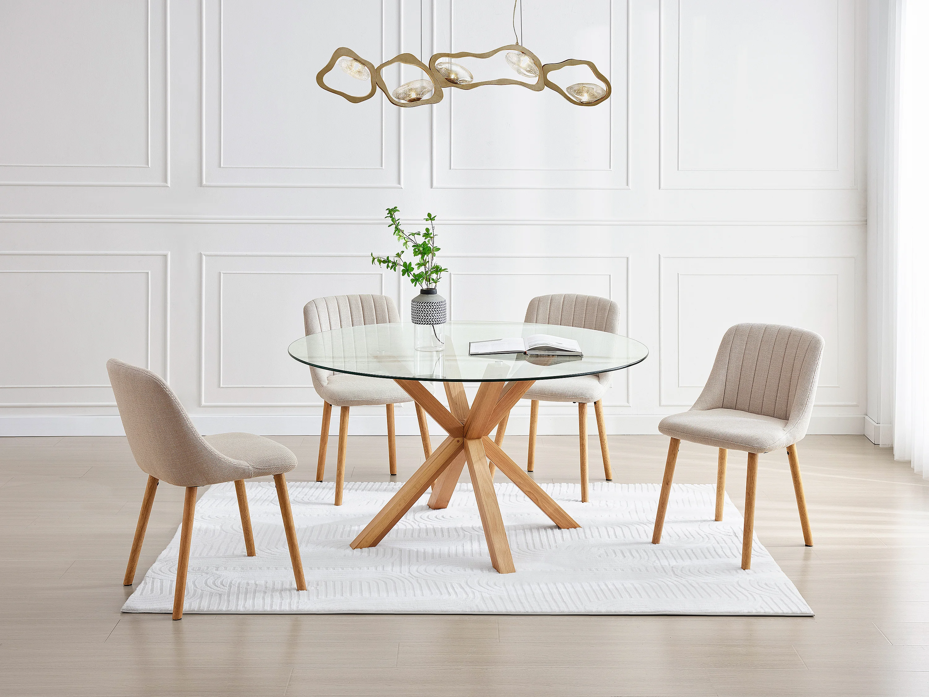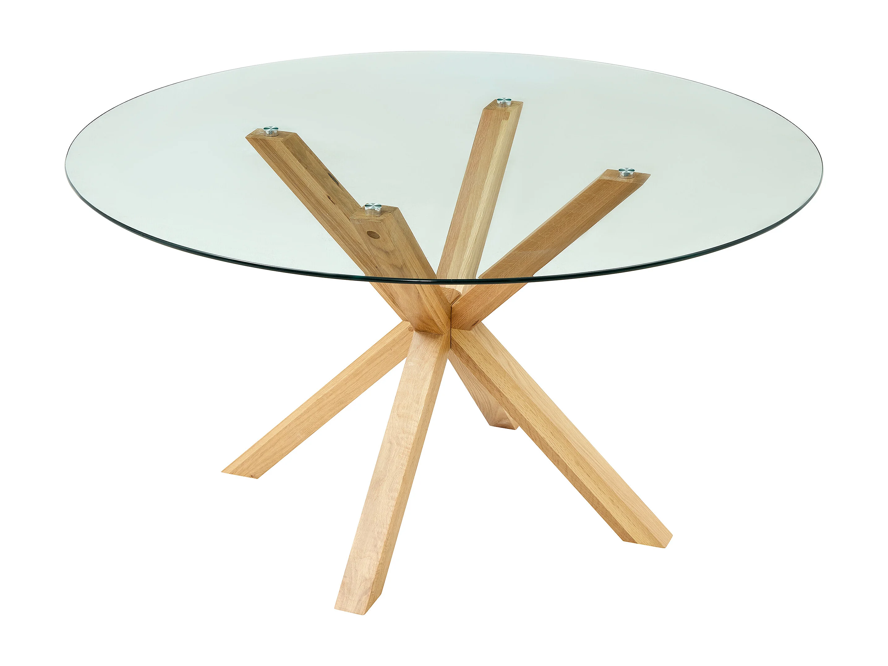 Table à manger ronde 4 couverts en verre trempé et bois de chêne - Transparent - LANIEVO
