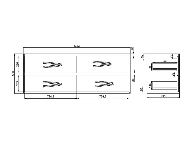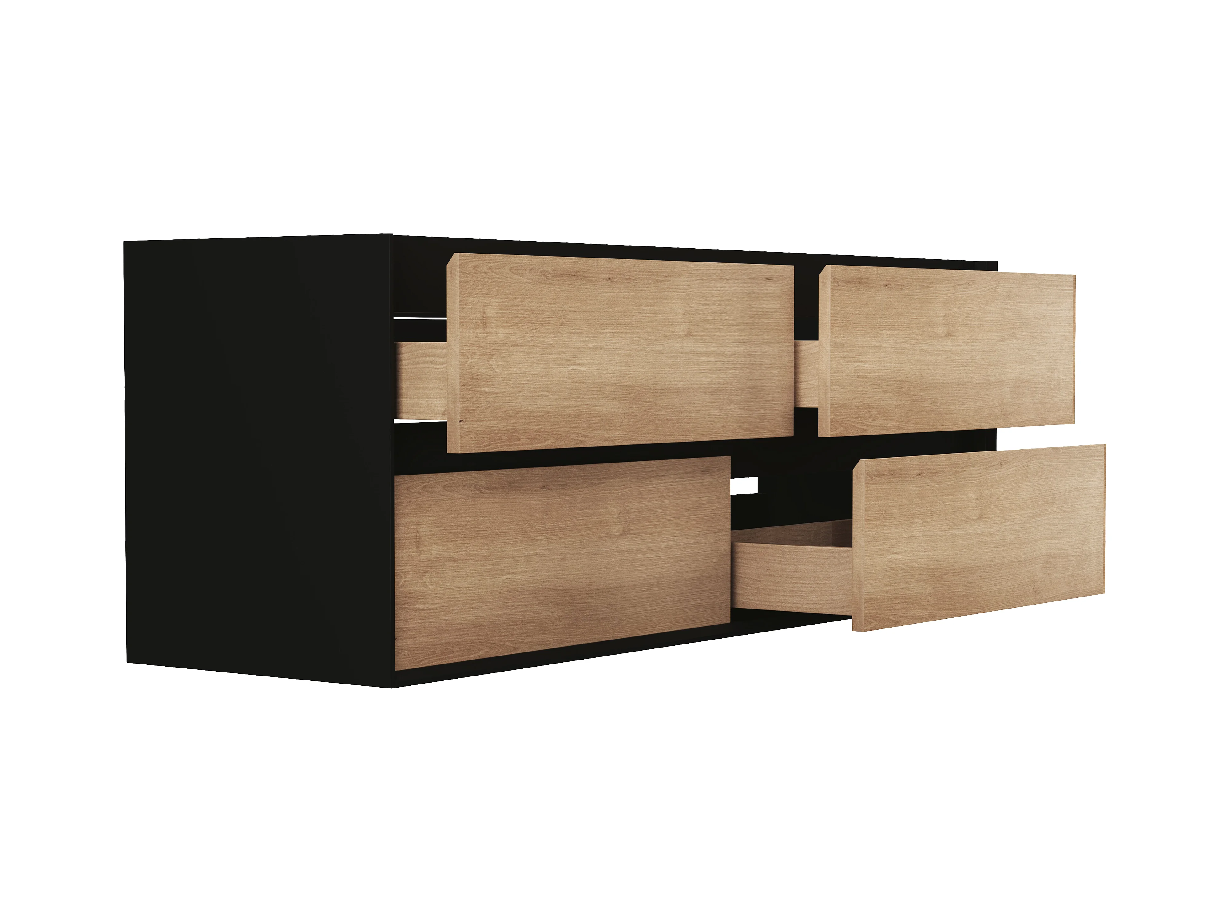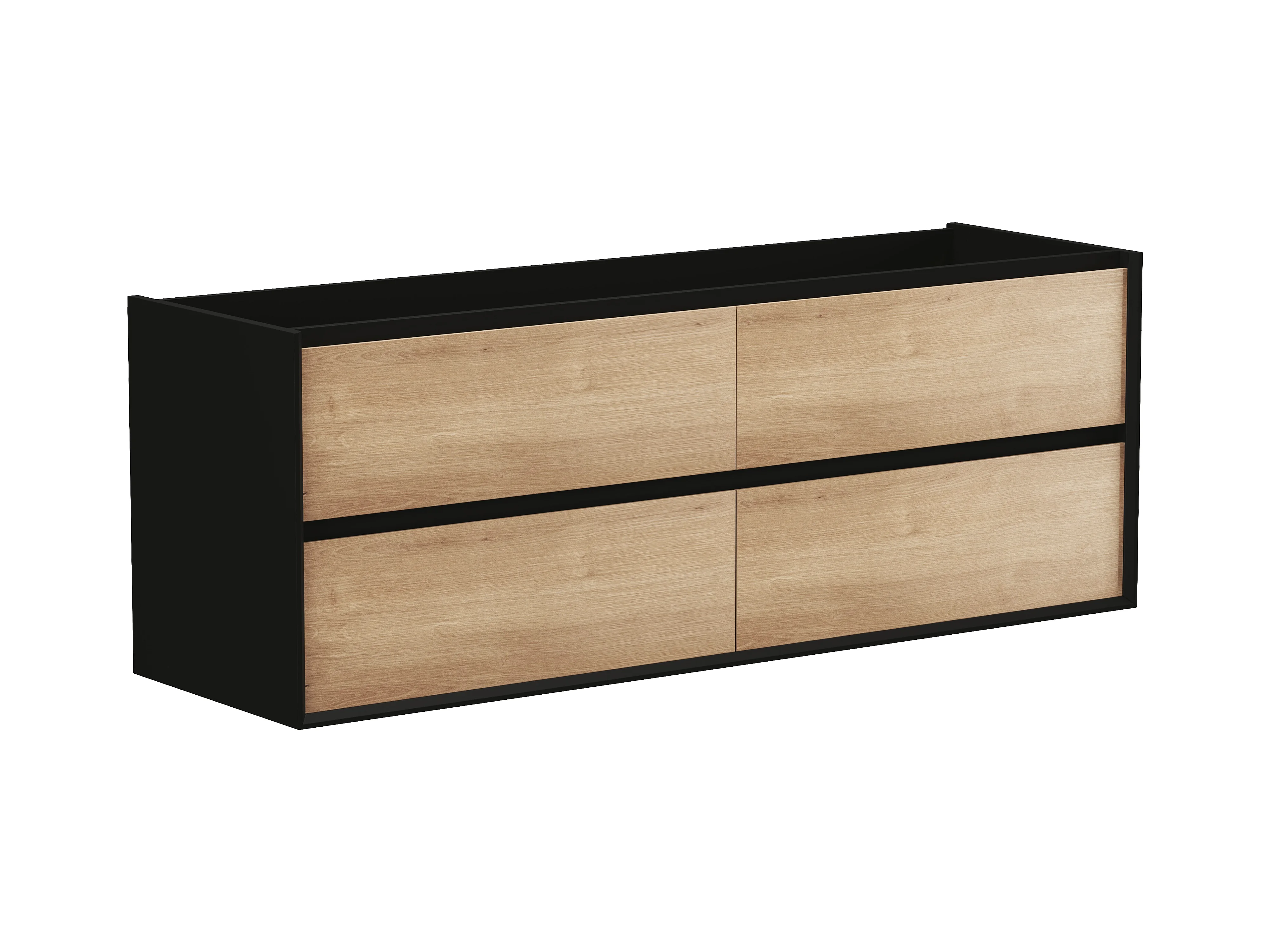 Meuble sous vasque suspendu - Coloris naturel clair et noir - 150 cm - LANNICK