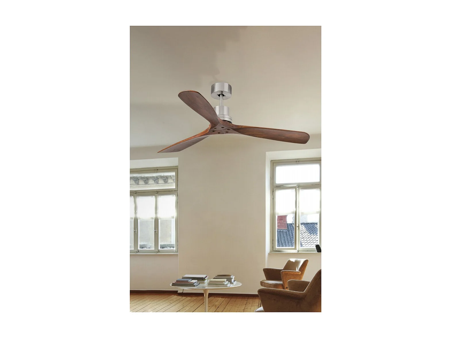 Ventilateur de plafond Faro Barcelona - Lantau L en acier et bois - Moteur CC silencieux, sans lumière, télécommande, 6 vitesses