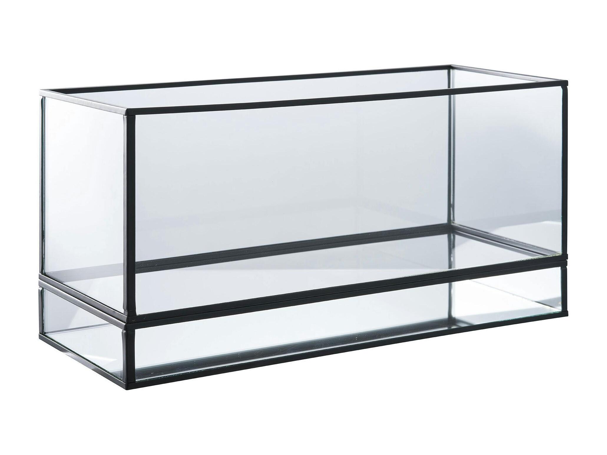Lanterne bougeoir en verre/métal noir - forme rectangulaire